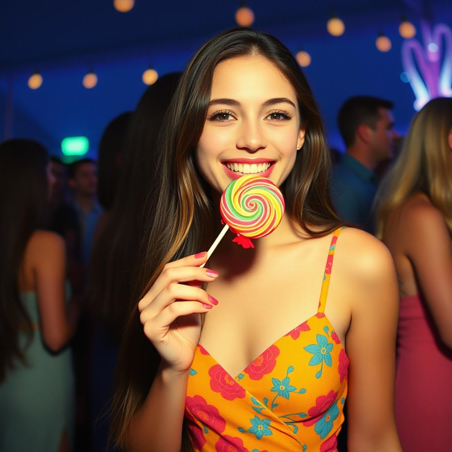 A bouncy party song, 140 BPM, 4/4, The Vox Continental Organ is prominent throughout, Song begins with an intro that is exclusively instrumental: a driving, loud, fuzzed-out Guild bass thumping a playful crunching fuzz riff, jangly distorted Fender lead guitar chopping chords, a bright 6-string Rickenbacker dancing on top, a prominent Vox Continental organ holding bubbly chords, and Ludwig drums pounding in with a cheeky bounce, syncopation and some cowbell, The sound is grungey but full of groove, with lots of energy and a summer party vibe, The vocals should feature the girls singing sweet, fun, cheeky harmonies and background vocals, often interplaying and overlapping in a lighthearted way, Keep the tone flirty, silly, and full of joy, The Crunchy fuzzed bass is dominant, HARMONY GUIDE: