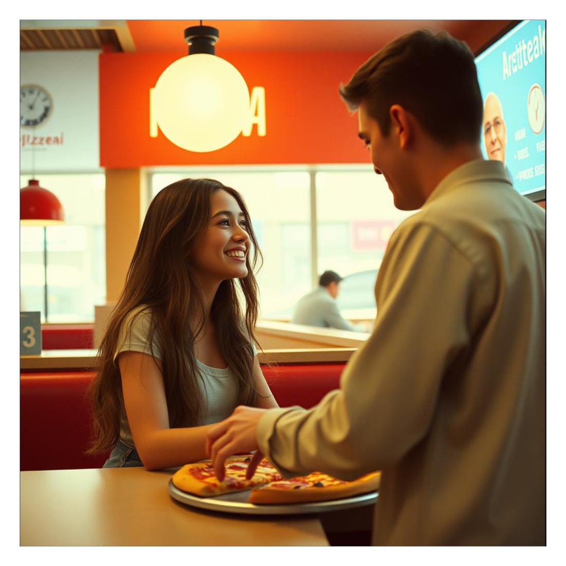 [Mood is playful and awkward, like a scene in an indie rom-com]