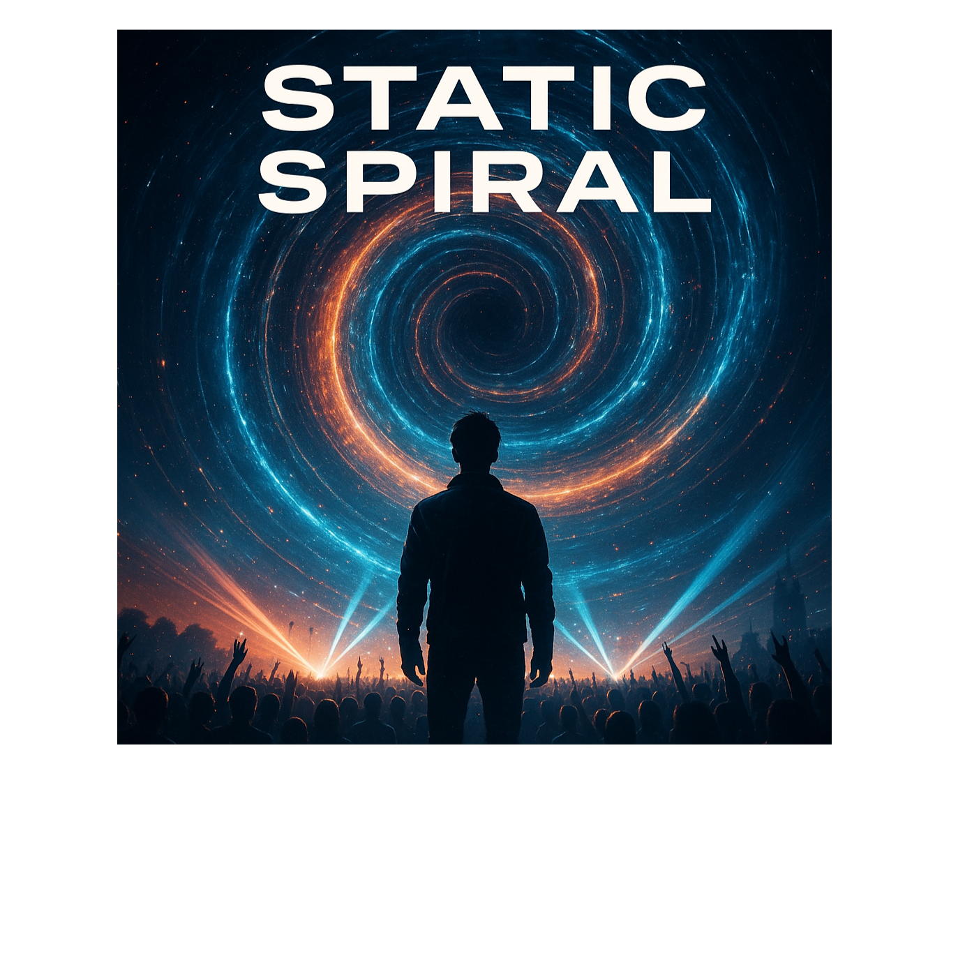 Euphoric progressive house × festival EDM × cinematic tribute anthem, Male vocals only – anthemic tenor with falsetto lifts, layered harmonies, and soaring long-note belts, Acoustic + piano intro swelling into bright melodic plucks, shimmering pads, and pulsing bassline, Massive festival drops with vocal chop hooks repeating “Static Spiral” and phrases from other titles, layered supersaws, sidechained leads, reverb claps, and crowd-lift percussion, Includes: soaring arpeggios, atmospheric risers, and punchy 4-on-the-floor kick, Mood: trapped yet explosive — stuck in quicksand while the world spins, broken but reaching for release, built to cry, dance, and scream under lights