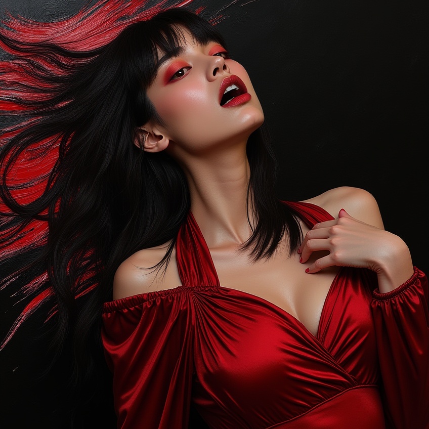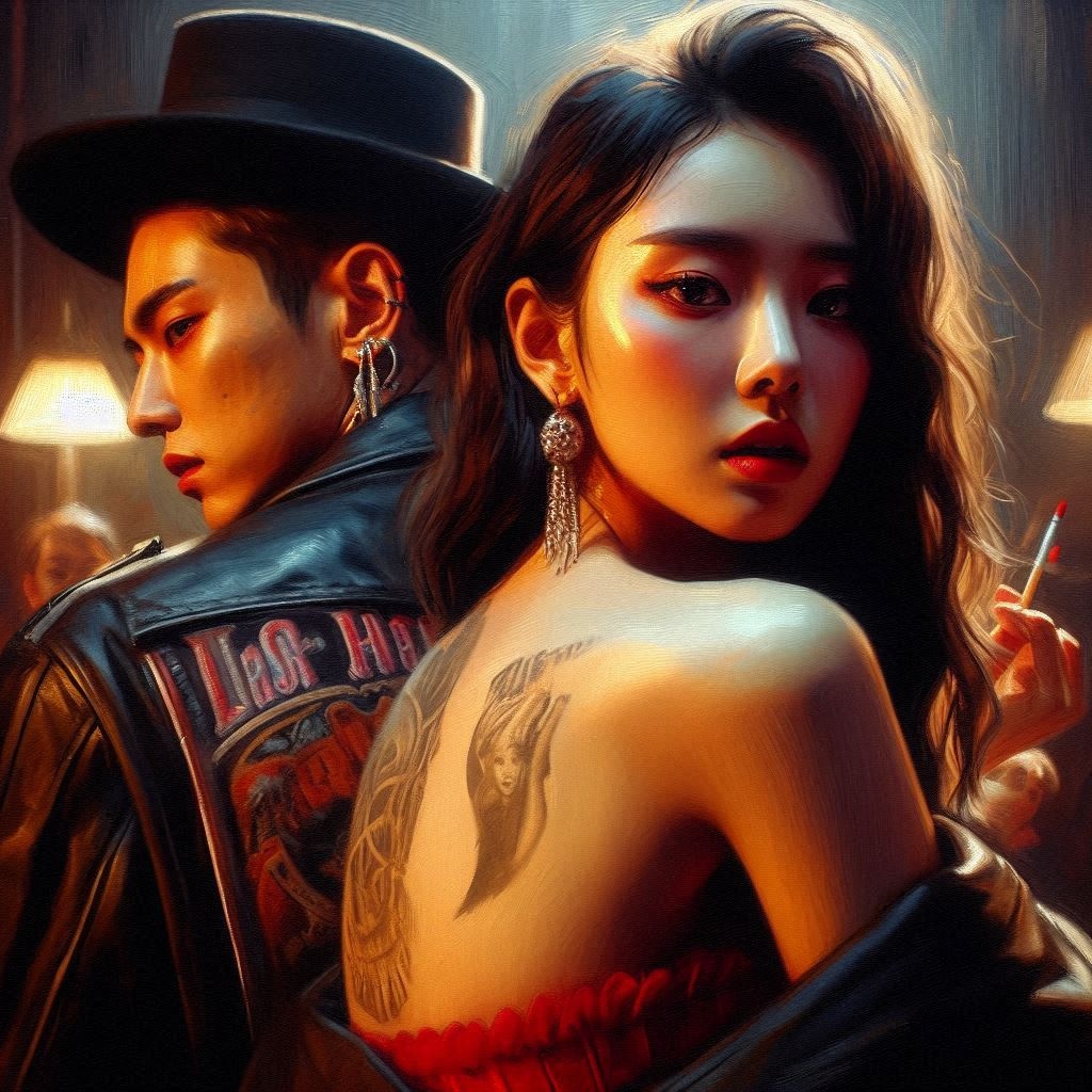 K-pop noir, seductive trip-hop, Slow tempo, breathy female vocals, smoky atmosphere, sensual, dark, moody beats