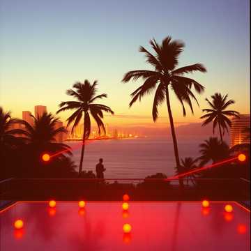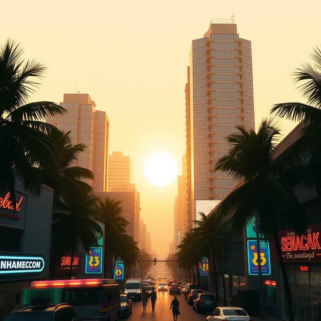 A bright, tropical Latin electronic track inspired by Caribbean and Afro-Cuban music, similar to a modern Tropico-style background theme, The groove is driven by lively Afro-Cuban percussion, clave-based rhythms, and playful salsa piano montuno, with warm Latin jazz brass and a sunny, island atmosphere, Modern EDM elements are layered on top for energy, including clean festival-style synths, subtle electronic drops, and rhythmic vocal chops used as texture rather than lead vocals, Phonk influence is kept minimal and textural, adding gritty, lo-fi distortion, dusty low-end saturation, and vintage ambience without changing the upbeat tropical groove, The overall vibe is energetic, colorful, and political-satire-like, blending tropical Latin warmth with modern electronic power, perfect for a stylish tropical city or strategy game background, ‑downtempo, ‑down vibe