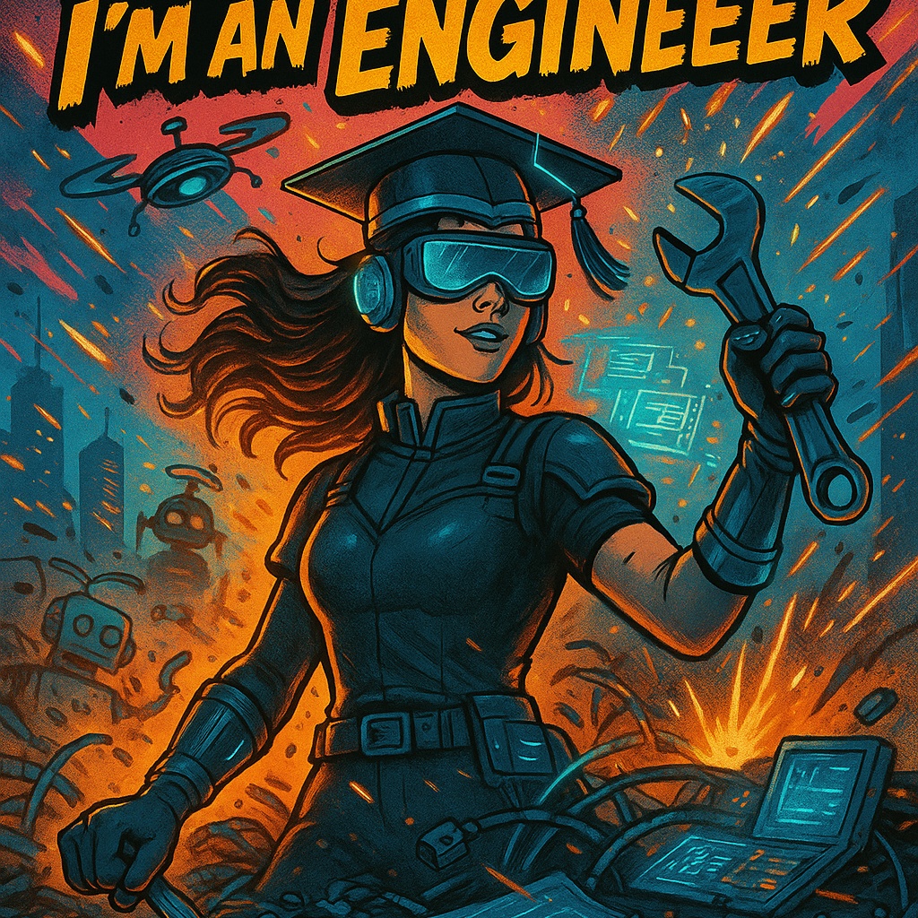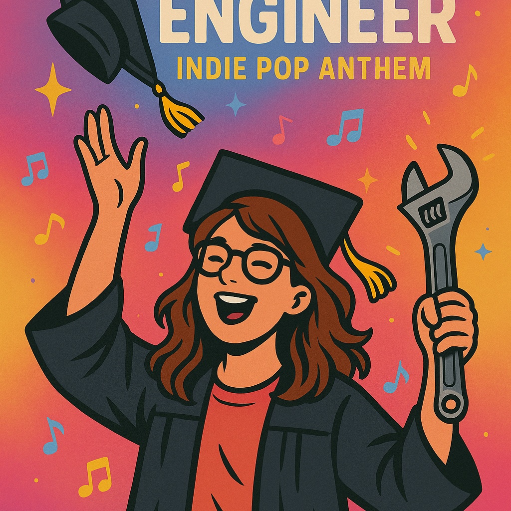High-energy pop-rock with jangly guitars, snappy drums, and a killer chorus, Lyrics are cheeky and clever, poking fun at college life with engineering flair, Think fun, fist-pump vibes with a rebellious streak, perfect for a witty grad, Vocals are bold and playful, with gang-vocal hooks for instant sing-alongs, Subtle synth stabs add a modern kick, keeping it catchy and cringe-free, ‑No heavy metal, ‑screamo, ‑or slow ballads, ‑Avoid trap, ‑hardcore rap, ‑or lo-fi, ‑Steer clear of childish pop or overly earnest vibes