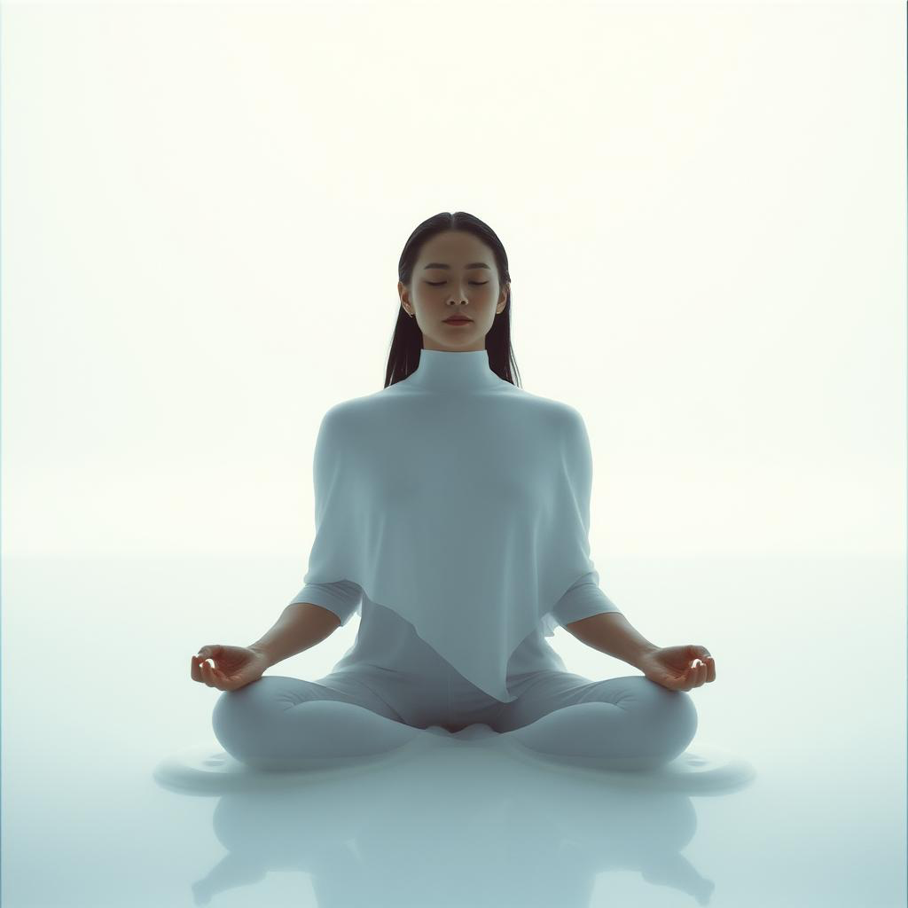 The track unfolds with Tibetan singing bowls resonating over sustained, soft drones and lush analog synth pads, Textures evolve gradually, enriched by warm reverb and a gentle pulse beneath, Ethereal atmospheres and expansive spatial sound design create an immersive, cinematic relaxation experience with a futuristic zen meditation vibe