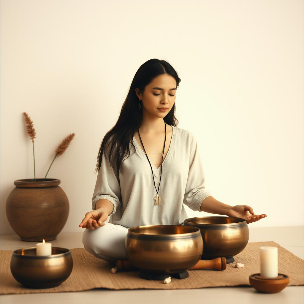 ambient, cinematic, meditative, synthwave, new age, relaxation, atmospheric, chillout, Singing Bowls
