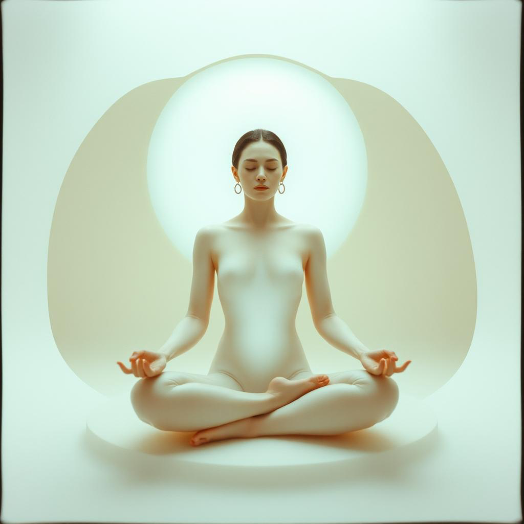 Layers of lush ambient synth pads and ethereal melodies float over gentle synthwave pulses, interwoven with singing bowl resonances for meditative atmosphere, Cinematic textures and subtle electronic percussion ebb and flow, building a serene, mysterious, and futuristic soundscape