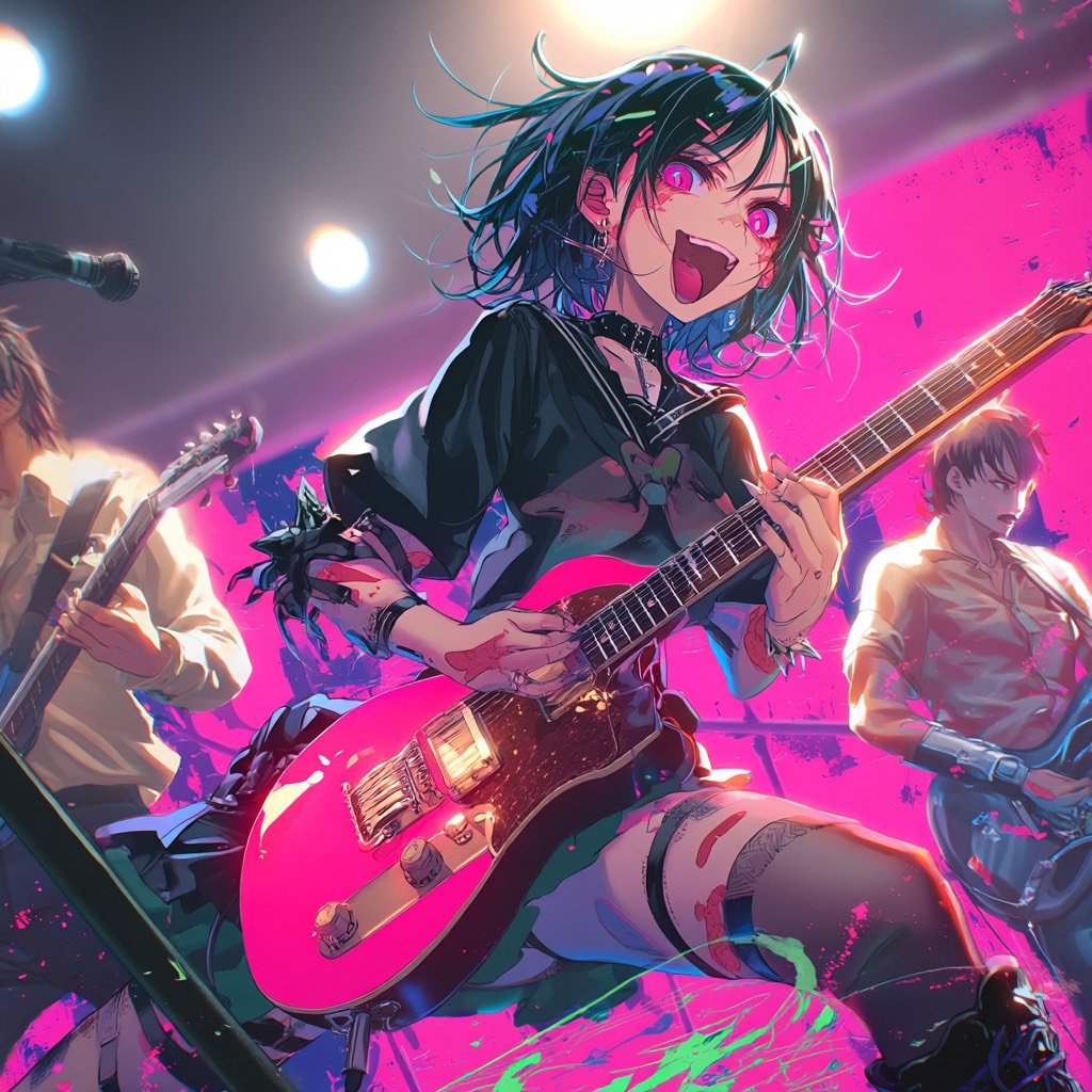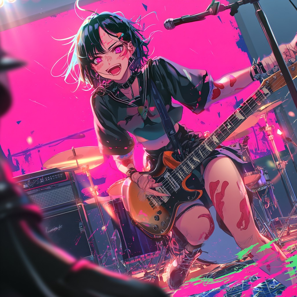 Modern J-Rock, Alternative Rock, with influences of Emotional Post-Hardcore, A raw, powerful, and stylish band sound, not a typical anime theme, Features sharp, distorted, and heavy electric guitar riffs and soaring lead lines, The rhythm section is extremely tight and powerful, The pre-chorus builds intense tension with palm-muted guitars and a driving snare beat, leading into an explosive, high-energy chorus where the full band unleashes, The final chorus must feature a dramatic key change for a powerful, climactic finish, Lead by a raw, emotional, high-tone male vocal with a wide dynamic range, capable of both breathy verses and powerful, screaming highs, ‑Anison clichés, ‑symphonic metal, ‑orchestral strings, ‑cheesy synthesizers, ‑retro 80s rock sound, ‑happy pop, ‑weak drums, ‑muddy production, ‑predictable chord progressions