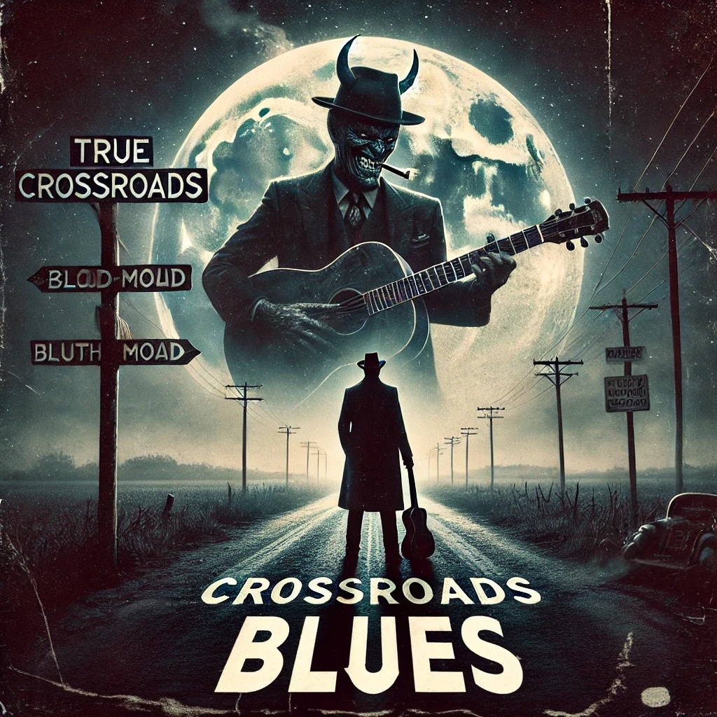 Slow, deep, husky, rusty voice of an old African American bluesman, whiskey-soaked Devil’s blues, smoky New Orleans cabaret, dark Delta blues, eerie gospel undertones, soul-heavy, raw, timeless, doom-laden