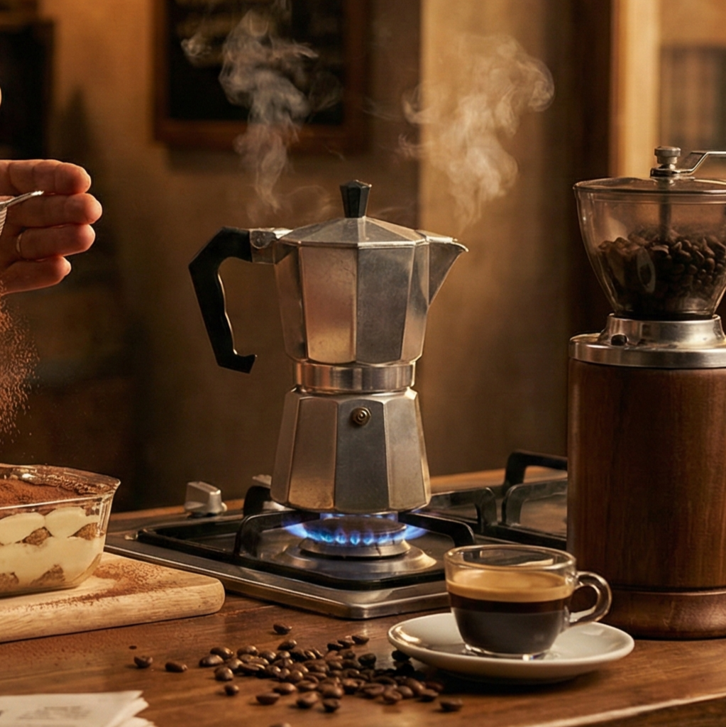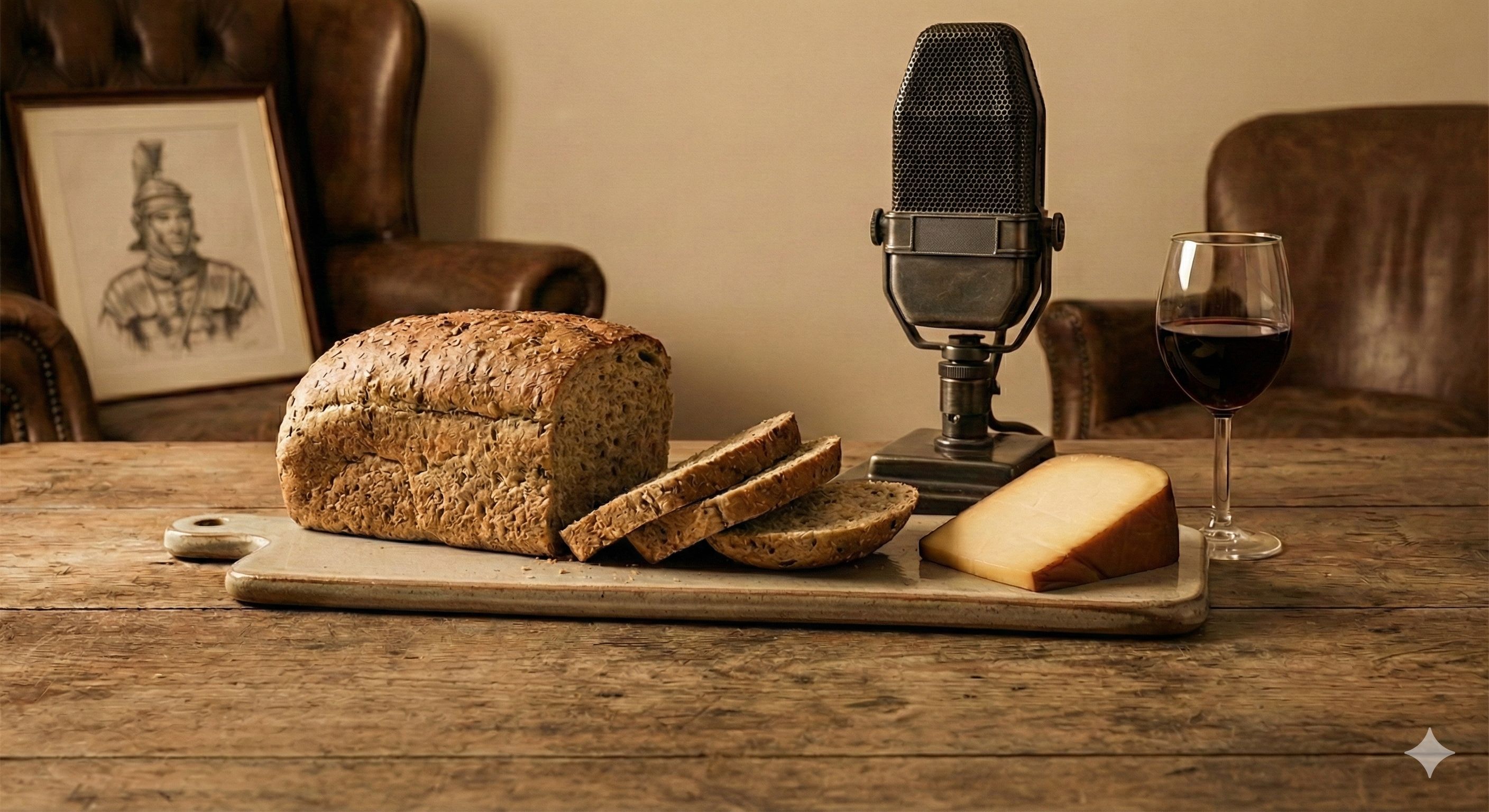 1950s BBC Broadcast, Audiobook, Spoken Word, Slow Soft Jazz, Italian Café Ambience, Piano, Upright Bass, Soft Accordion, Baritone, RP English Accent, Sophisticated, Sensual, Instructional, Italian Accordion (Subtle), Double Bass, Male Vocals, RP British English Accent, RP King's English throughout, Articulate, Crisp Enunciation, Warm, Gastronomic, Slow Tempo