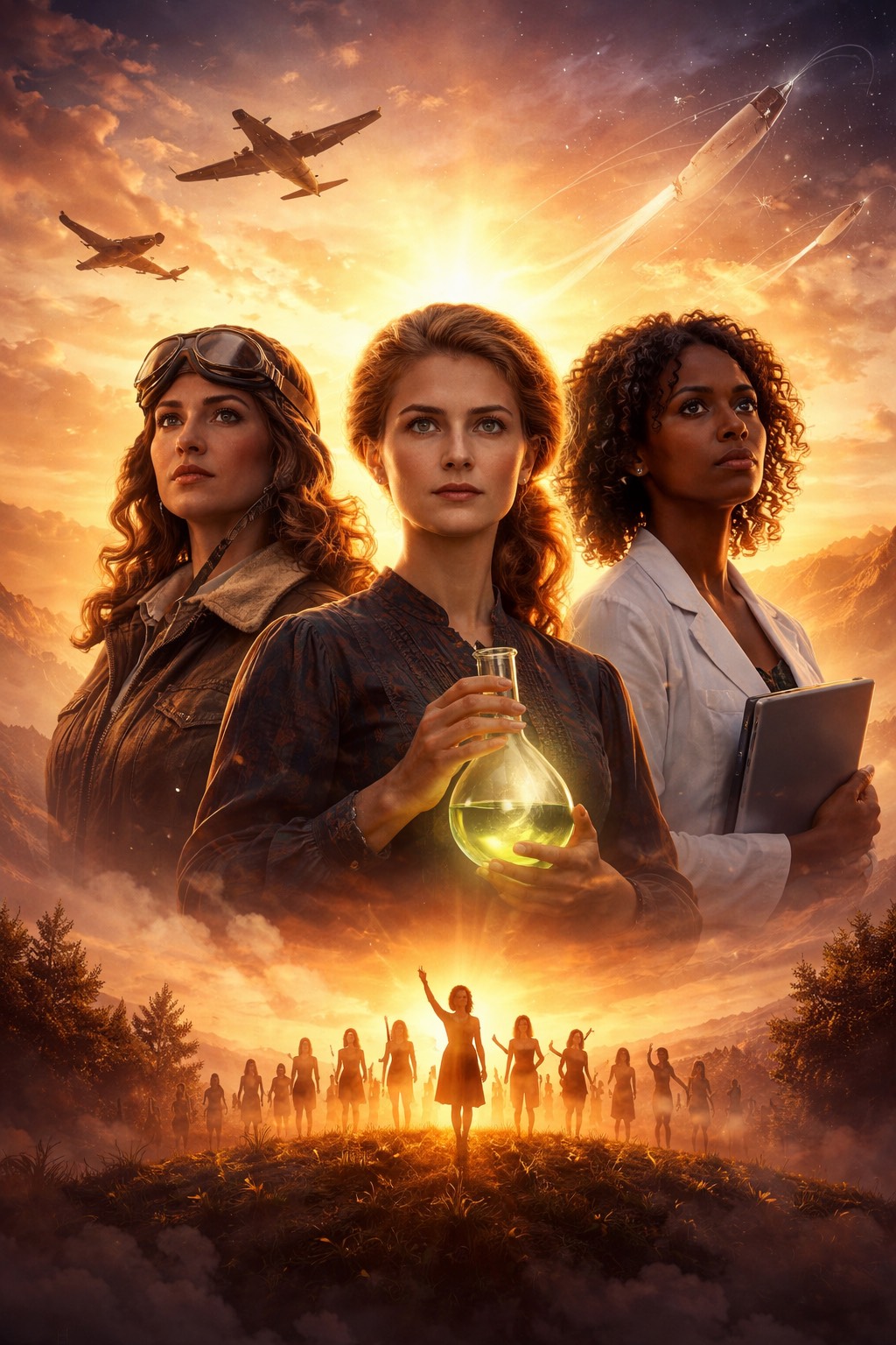 Cinematic inspirational anthem, orchestral pop, powerful female lead vocal with emotional clarity, warm mezzo-soprano tone, large cinematic strings, piano foundation, epic percussion, soft choir harmonies in the chorus, gradual build from gentle reflective verses to powerful uplifting chorus, emotional and dignified, hopeful and heroic, International Women’s Day theme, atmospheric and inspirational like a film soundtrack