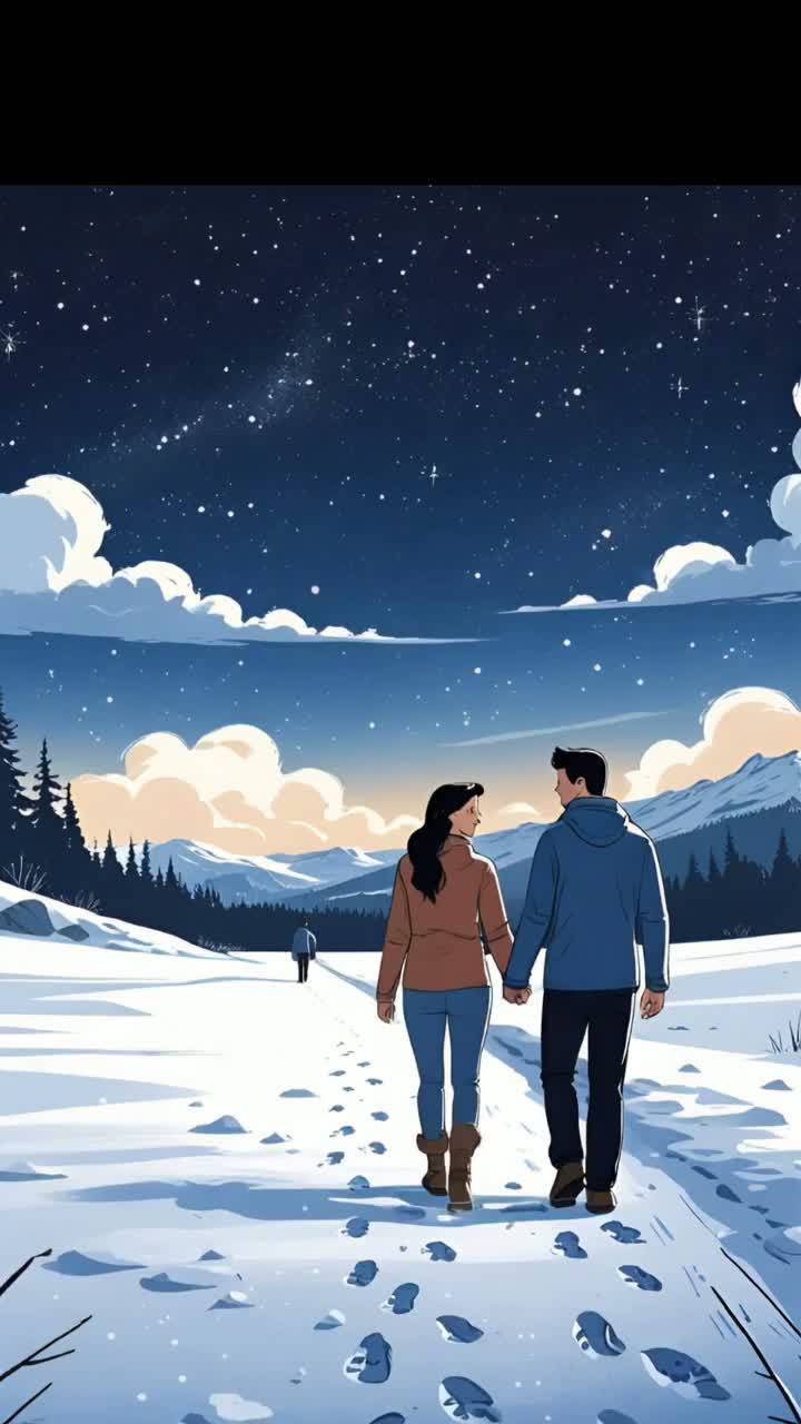 lo-fi, chill, acoustic, ambient, winter, soft piano, realistic snow footsteps, husky male vocal, mature male singer, male lead vocal, female harmony, duet humming, calm, peaceful, emotional, cinematicintro with slow snow footsteps, ambient background wind, cinematic soundscape