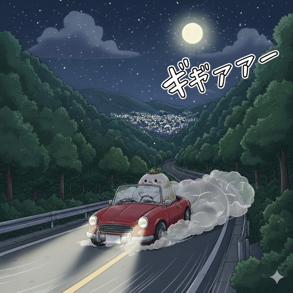 Eurobeat in the style of DJCommand from the Eurobaka Ichidai albums: ultra-fast BPM, explosive intro with engine rev FX, aggressive sawtooth leads, bright hyperactive Japanese synths, chaotic riffs, punchy rolling snares, heavy kick, syncopated Italo-Disco bassline, frantic transitions with risers and double drops, anime racing energy, hype shouts, and a massive emotional chorus with that signature DJCommand intensity
