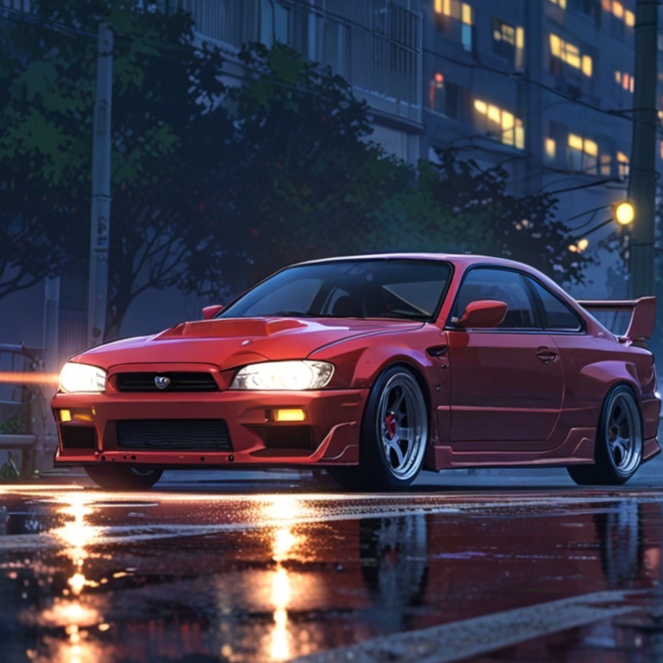 Sophisticated early-2000s electronica with high-energy eurobeat featuring sleek drum programming and driving four-on-the-floor beats, Polished digital processing balances euphoric dance elements creating upscale atmosphere with infectious energy, Relentless kicks and crisp hi-hats maintain momentum while warm analog pads support soaring lead melodies, Synthesizers deliver catchy phrases with smooth filtering, incorporating jazz-fusion progressions and anthemic eurobeat hooks, Vinyl warmth, spacious reverbs, and dynamic builds evoke luxury automotive environments with underground racing excitement, Rich synthesizer tones and punchy basslines oscillate between refined elegance and dance energy while bright synth leads sparkle through pristine high frequencies, Captures refined streetracing culture with driving rhythms transitioning from contemplative moments to high-octane racing action