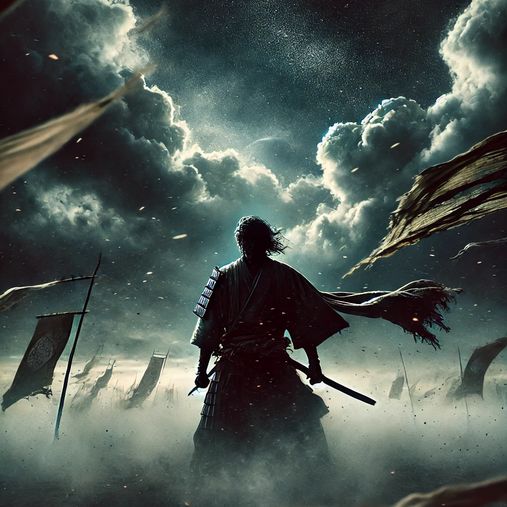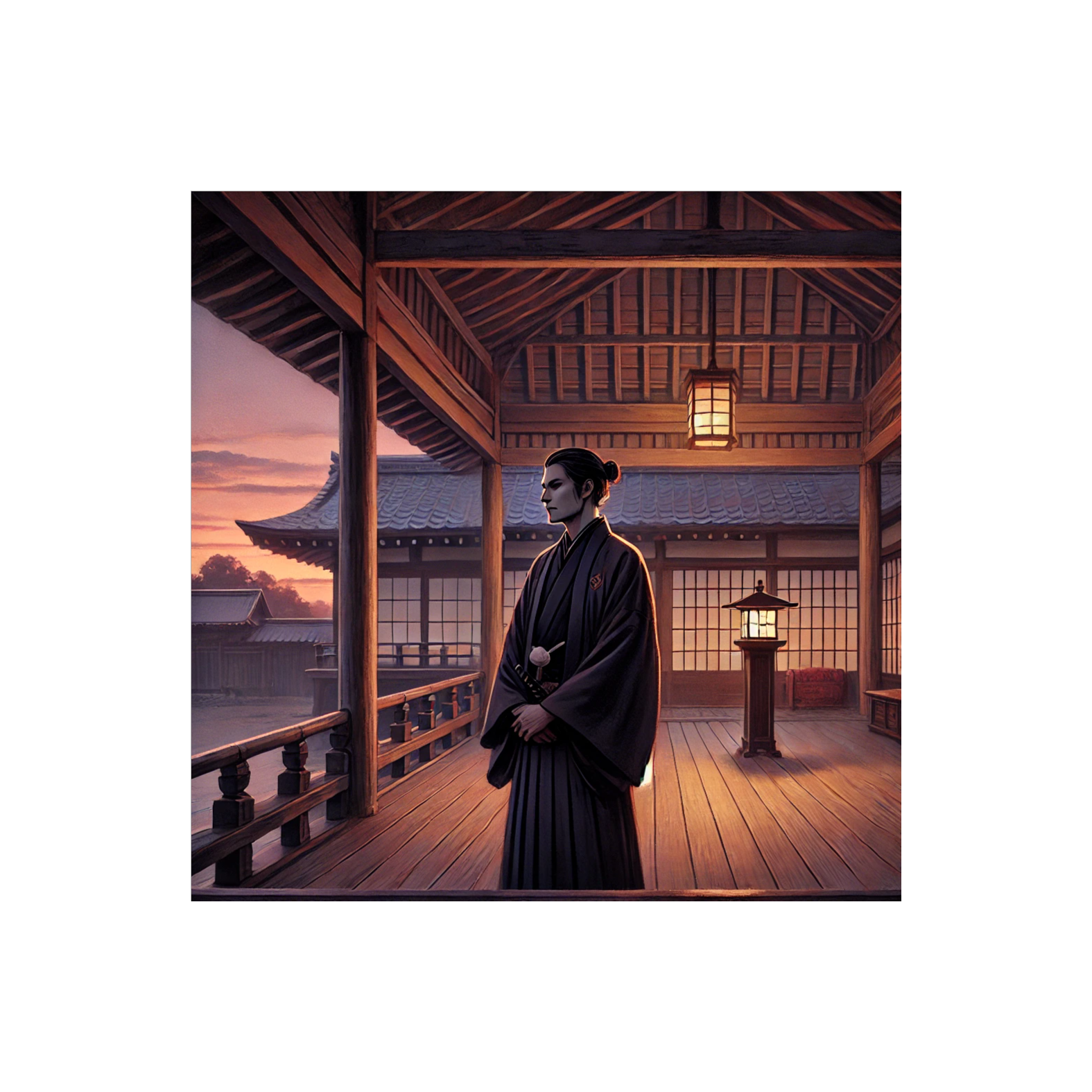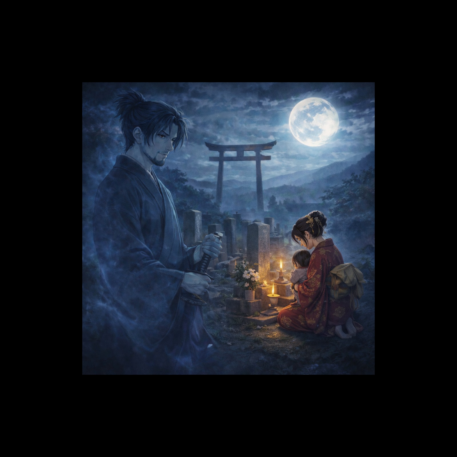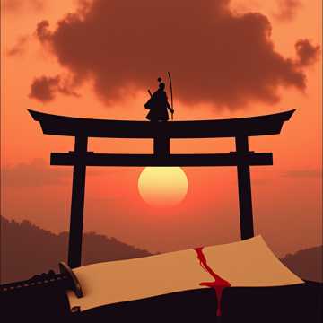 dramatic cinematic spoken word narration, theatrical emo rock instrumental backing like My Chemical Romance-style The Black Parade, no singing no melodic vocals, deep intense male spoken voice with reverb, building orchestral strings and brass swells, heavy distorted guitars, pounding marching drums, epic piano motifs, dark atmospheric tension, post-hardcore rock opera atmosphere, honor vengeance samurai theme, no chorus no song structure, purely spoken monologue over rock instrumental, ‑singing