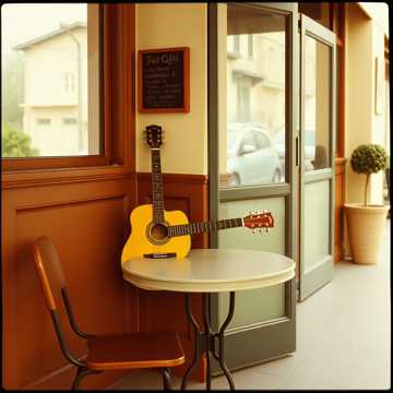 [Mood: cheerful, relaxed, slightly retro, café atmosphere]
