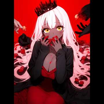 Gritty female vocals, Raspy, insane, yodeling, vocal flips, dark orchestral, piano, music box