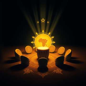 Create a very powerful and loud, Rhythmic African folks song, Sweet, very young female vocalist with melodic off-tones in her voice, African male vocalists with deep, rough voices, echoing words in brackets, Loud African tribal drumming, acoustic, progressive, loud African embiont and synths, Add beautiful, unique African Rhythmic melody, medium tempo, Rhythmic song, emotional