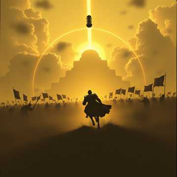 A fast epic anime battle instrumental that blends orchestral rock, taiko drums and electric guitar, no lyrics, only wordless shouts and chants, The track opens with tense strings, low choir and distant taiko hits, like a godlike warrior stepping onto a shattered battlefield, A sharp main theme in an oriental scale explodes with distorted guitars and double kick, supported by brass stabs and aggressive string ostinatos, Massive drum ensembles pound in complex patterns, answering short heroic chant lines from a mixed choir, Midway, a sorrowful interlude with solo flute, piano and soft pads shows fallen allies and the weight of the war, then the music surges back with faster riffs, furious drum fills and higher choir lines that fight against the darkness, The final assault stacks guitars, strings, brass, taiko and chants into one overwhelming wave of power before everything cuts to a single echoing note hanging in the air