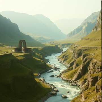 An instrumental fusion of traditional Irish folk and Andean pan flute melodies, with powerful cinematic drums and flutes, The music starts with a mystical Celtic atmosphere—featuring fiddle, tin whistle, violin, and bodhrán—then gradually blends into soaring pan flute lines and deep, rhythmic hand drums, Romantic, adventurous, and spirited, like a journey across ancient landscapes, No vocals, purely instrumental, Whole Orchestra of instruments