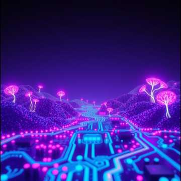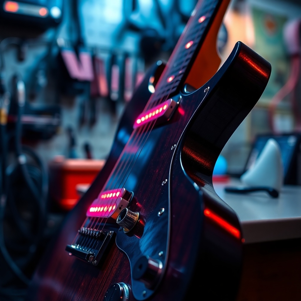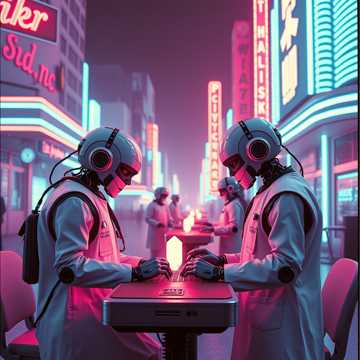 synthwave metalcore, dual female vocals, heavy guitars, rhythmic drops, cyberpunk atmosphere
