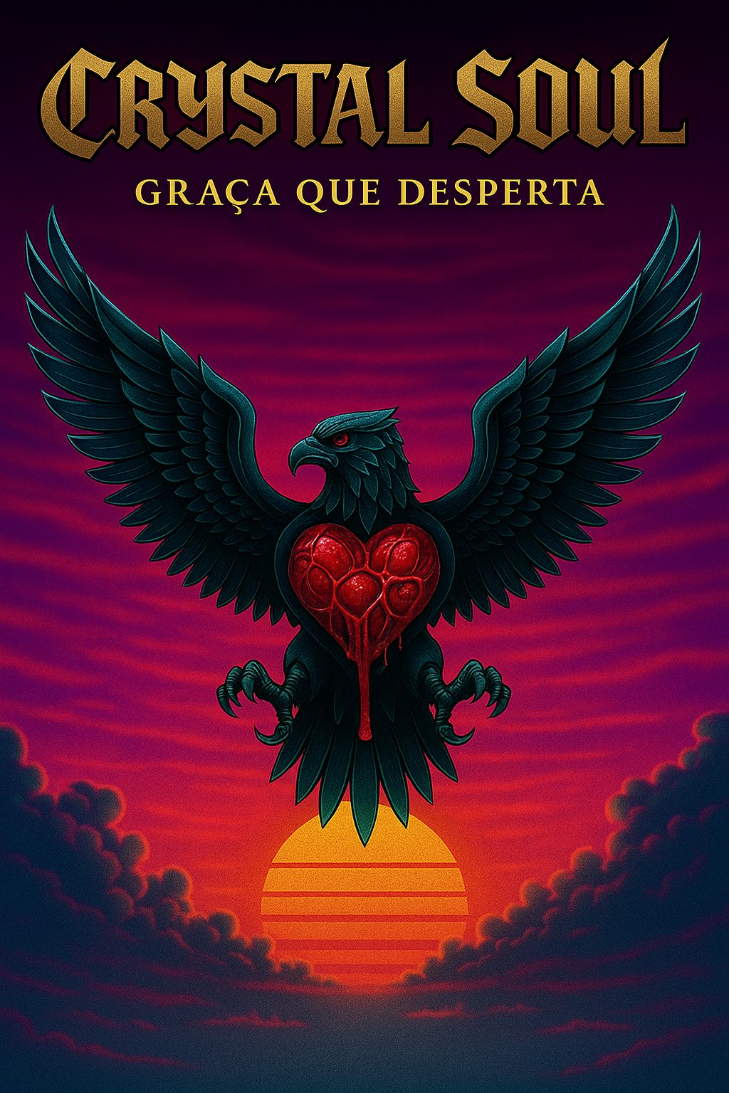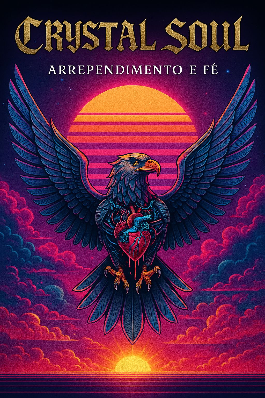 High-BPM electrocore / EDM meets melodic metalcore and post-hardcore with worship and cinematic soul elements, Intense, emotional, and epic sound with arena-ready energy and gym-hype impact, Cyberpunk synths, heavy distorted guitars in Drop D and Drop C, deep pulsating bass, double-kick drums, glitchy FX (heart monitor beeps, mechanical sounds, clanking weights), Verses with alternating clean and distorted guitars; pre-chorus building with rising pads; chorus features fingerpicked guitars, massive duet harmonies (male baritone/tenor + female mezzo-soprano), emotional layered vocals, and arpeggiated synths, Bridge explosive with optional melodic guitar solo and male screams; outro fades soft and heartfelt, Dynamic production with crescendos, expressive harmonies, emotional depth, melancholy and hope intertwined, Studio-quality, mastered, radio-ready sound, 120 BPM, syncopated off-beat rhythm, euphoric, cinematic, powerful — theme: “Tudo que é, é o Amor de Deus, ”
