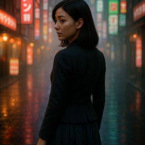 Vocal: Female, Young but Mature, Soft and Smooth, Emotional, Long Vibrato, Breath Expressive, Painful and Intense, Night Mood, 70s Showa Idol / Young Enka Singer Style