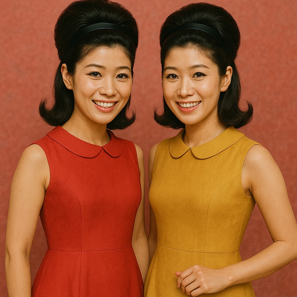 kayokyoku, 60s pop, dramatic, cinematic, twin vocals, retro, fugue-style, harmony, emotional, female duet