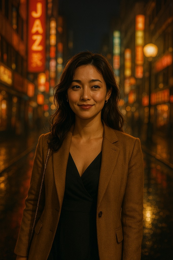 Style: 70s Showa-inspired, modern city pop, funk rock, moderately fast tempo, groovy, jazzy, bright, emotional, nostalgic, urban night vibe, Vocal: Female lead vocal, expressive, emotional, sultry but slightly playful, bright tone, dramatic in last chorus and outro, Instruments: Solo saxophone (front and center, expressive, bright tone), bass (deep, groovy, melodic), drums (tight, funky, with punchy rhythm), guitar (clean, light funk rhythm, background), electric piano (bright, airy), strings (soft, background), Prompt:“70s Showa-inspired city pop with modern funk rock groove, moderately fast tempo, groovy and bright, deep bass and tight funky drums, Prominent solo saxophone with expressive, bright tone, Emotional, playful female vocal, Clean funk guitar, airy electric piano, subtle strings, Nostalgic urban night with a lively, modern energy, ”