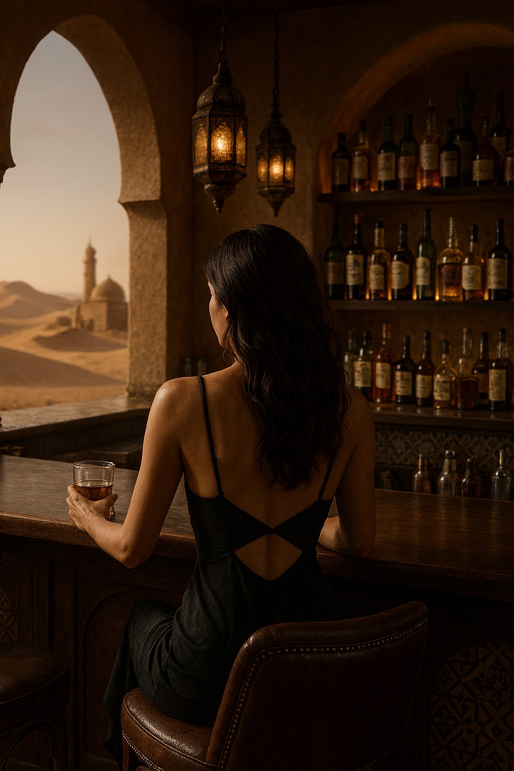 Prompt: A nostalgic Showa mood kayou ballad in the style of a 60s female vocal, mid-tempo swing with romantic exotic Arabian touch, unison storytelling verses, harmonized pre-chorus, full rich chorus harmonies, dramatic last chorus with octave layers, shimmering barroom and desert night atmosphere, emotional but not heavy, like a nostalgic monologue, before returning to sung vocals