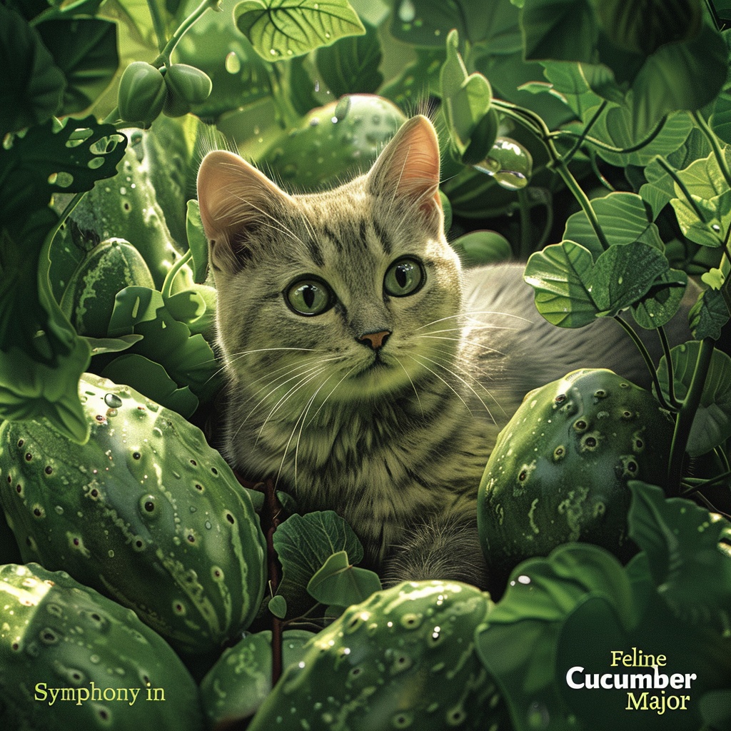 whimsical, playful, rhythmic, dynamic, feline, cucumber, symphony, instrumental, tempo variations, violin, piano, cello
