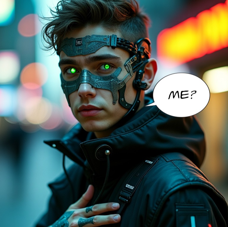A noir-infused neo-prog space ballad blending brushed drums, phaser textures, and soft analog synth arps, Features moody Fender Rhodes, jazz guitar bends, upright bass, and a silky male lead vocal with a crackling undertow, Female whispers provide spectral harmonies on key phrases, The atmosphere is cosmic and sardonic, with layered soft brass swells and a subtle Moog lead adding nostalgic tension, The through-composed structure flows like a confession, deepening across each section with shifting harmonic beds and narrative instrumental cues, Tempo ranges 88–99 BPM in F# minor