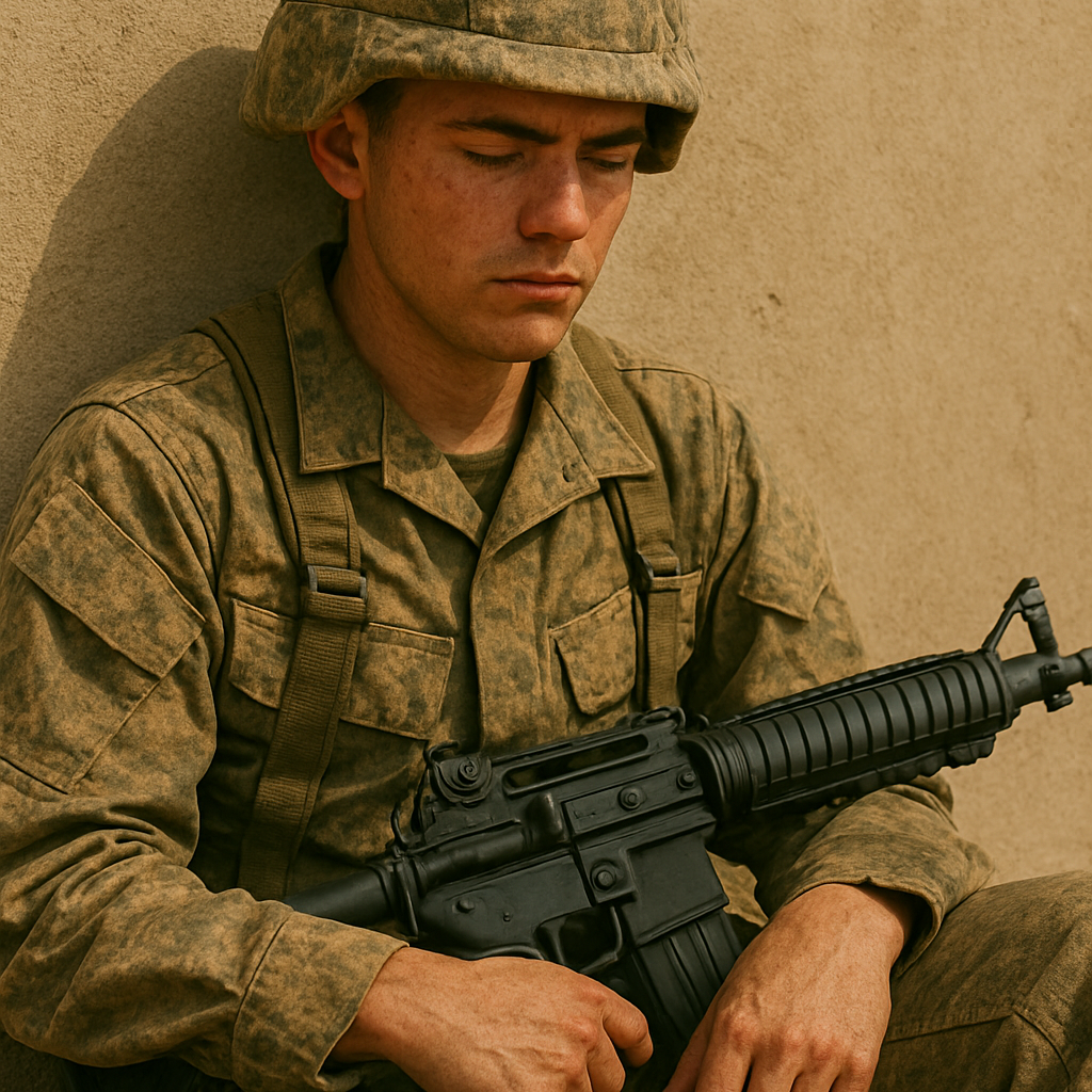 A somber song with contrasting harmonic melodies detailing the struggles of mental health through the analogy of battle, Soft tone with whispy lyrics, Verses are back and forth between 2 voices, Main vocalist has a deeper voice