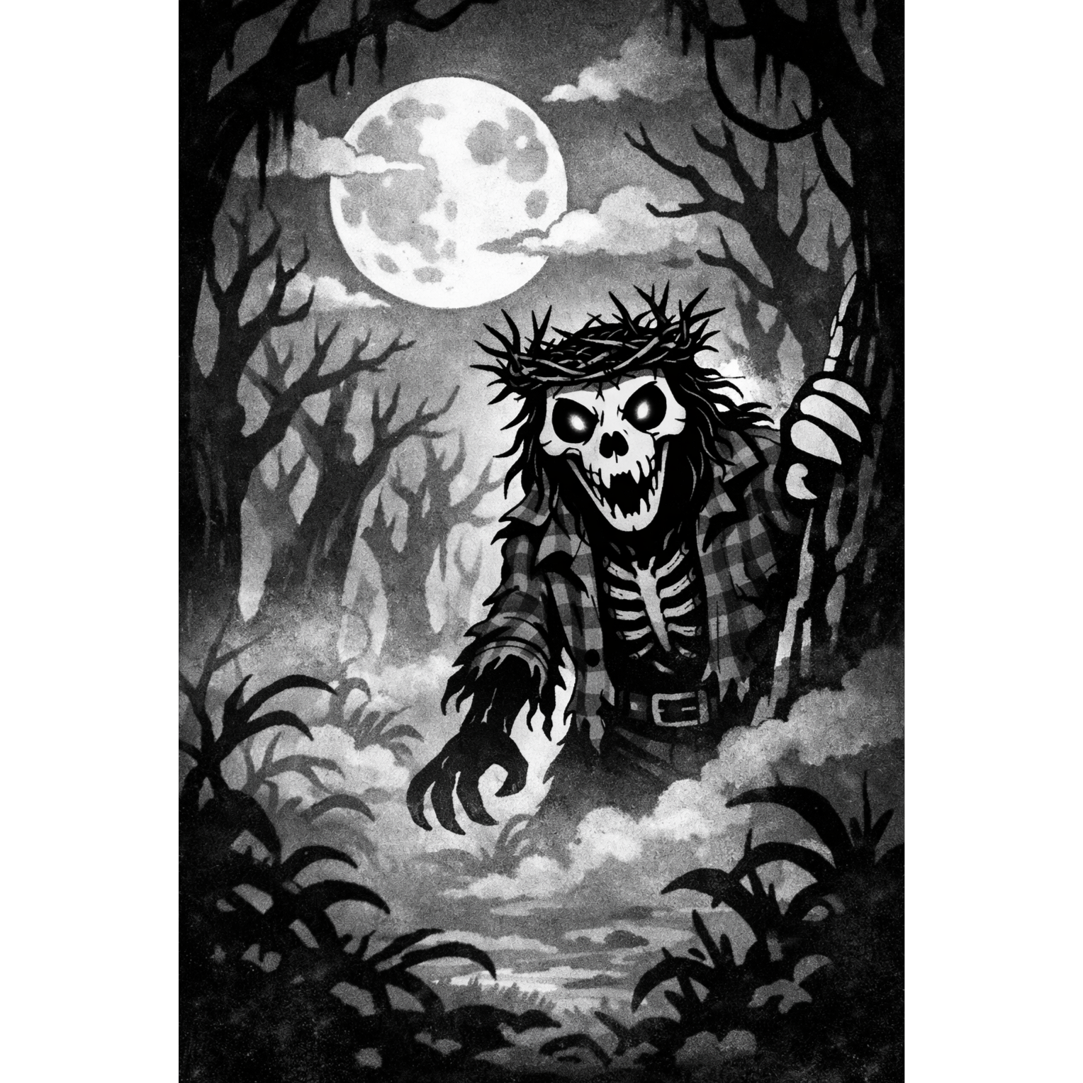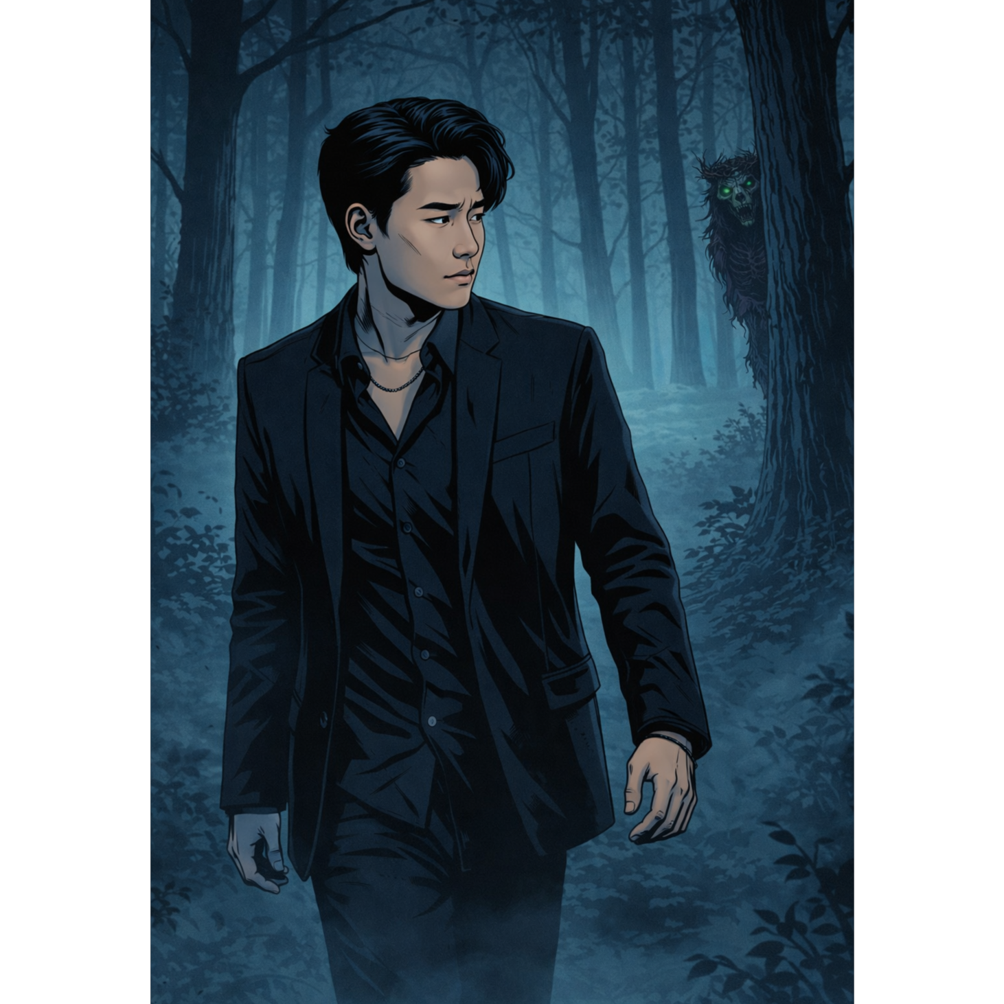 This dark folk track in a minor key opens with sparse acoustic guitar fingerpicking, layered over deep, moody bass, Atmospheric synth pads and haunting piano lines creep in, adding tension, The arrangement subtly builds in density, maintaining a somber and sinister high-fidelity sound