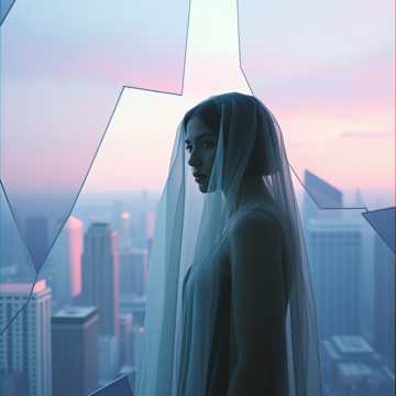 Atmospheric Noir Ballad, triphop, with EMD effects, 80 BPM, Chords: $Em - Cmaj7 - D/F\# - G$ (with an unexpected $B\flat$ for the 'Blue note'), Vocal-forward mix, intimate breathy female vocals, somewhat nasal in the higher regions, warm in the lower regions, Heavy emphasis on warm deep fretless bass and crisp nylon guitar, Minimalist percussion, soft brushes, Lush legato strings in a focused stereo field, Emotional, melancholic, transition from tension to relief, High-fidelity