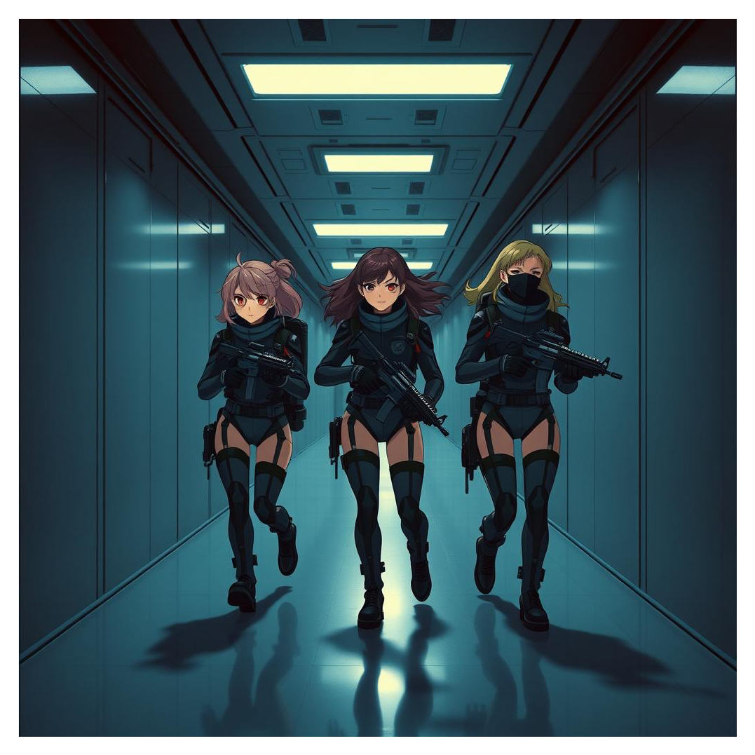 futuristic, cyberpunk goa trance, techno, highly combat and chasing situation, finally hot extract, eavy driving drums, intense acid synth, very high-BPM, rainy neon city ambience, glowing-up