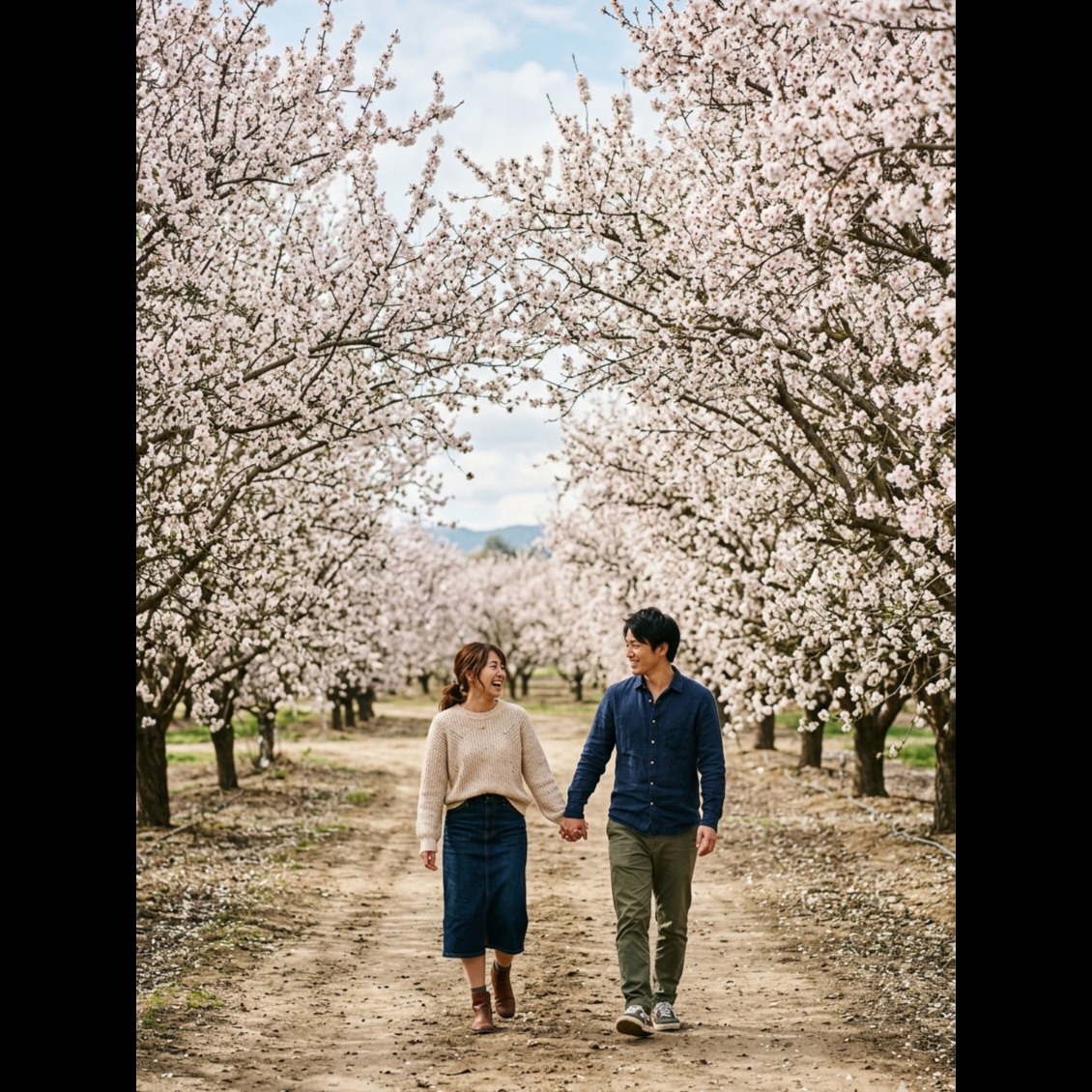 `Live concert, Japanese Group Sounds, GS rock, city pop, minor, 132BPM, passionate female alto vocal, live shout chorus, call and response, lead electric guitar(melodic single-note runs with reverb), 2nd electric guitar(rhythmic chord strumming), electric piano(sustained chords with tremolo), trombone(warm legato lines), trumpet(bright punchy accents), drums(driving backbeat with fills), orchestra(lush string swells and brass stabs), A woman's long-suppressed love finally blooms like almond blossoms, growing through seasons of longing into passionate confession on a tree-lined path, `