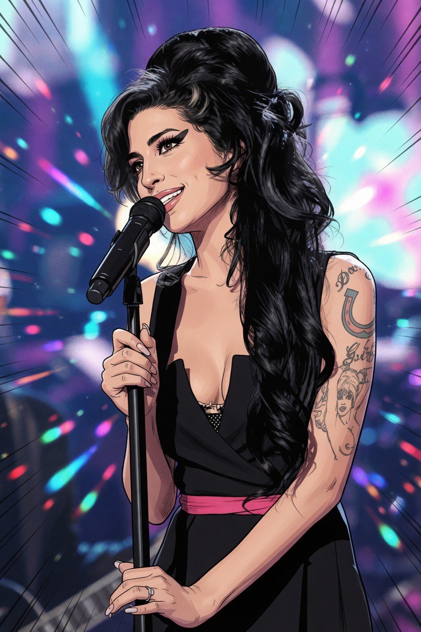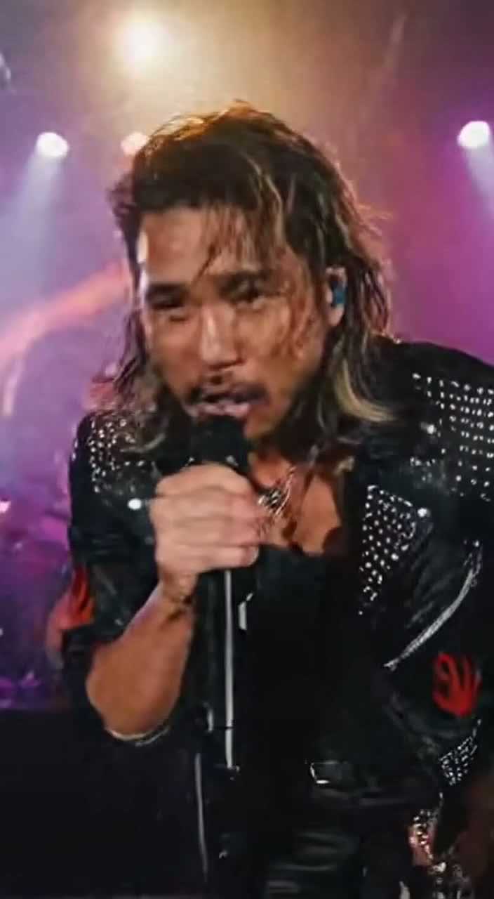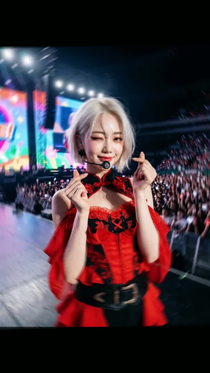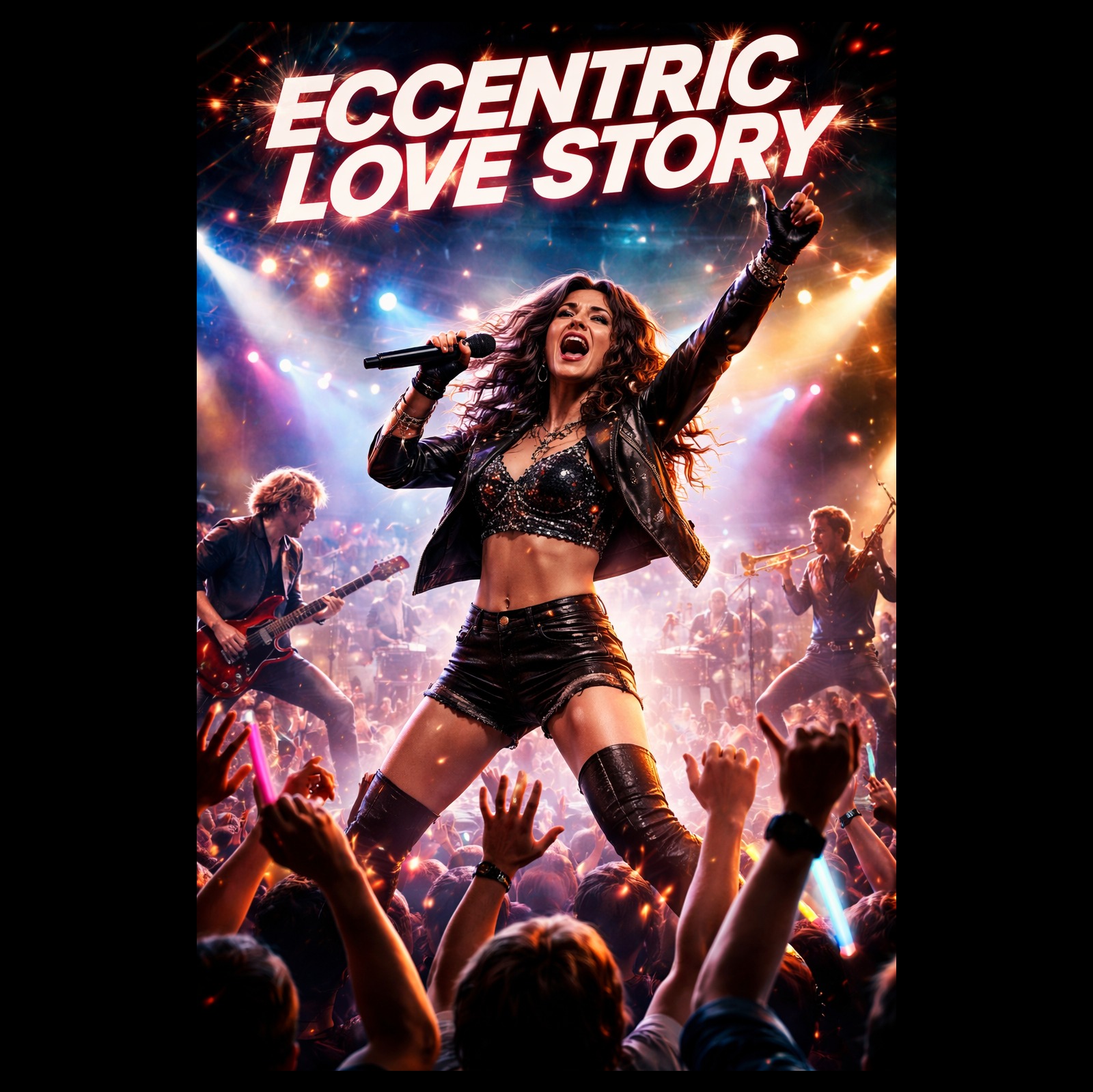 live concert, eccentric, arena rock, new wave, minor, 124BPM, powerful female vocal(loud, belting, gritty edge), live shout chorus(call and response, crowd chant, group vocals), cheering never stops until the end(crowd roar, handclaps, stomps), lead electric guitar(riff driven, bending, heavy distortion, anthemic hooks), 2nd electric guitar(rhythm, power chord, wide stereo, layered wall), electric bass(driving, slap, punchy low end), synthesizer(lead synth, bright pad, arena fill), trumpet(stabbing, bright, accent hits), violin(aggressive, fast bowing, driving tension), drums(hard hitting, arena reverb, driving groove), explosive energy, relentless momentum, anthemic eccentric love story, crowd roaring from start to finish