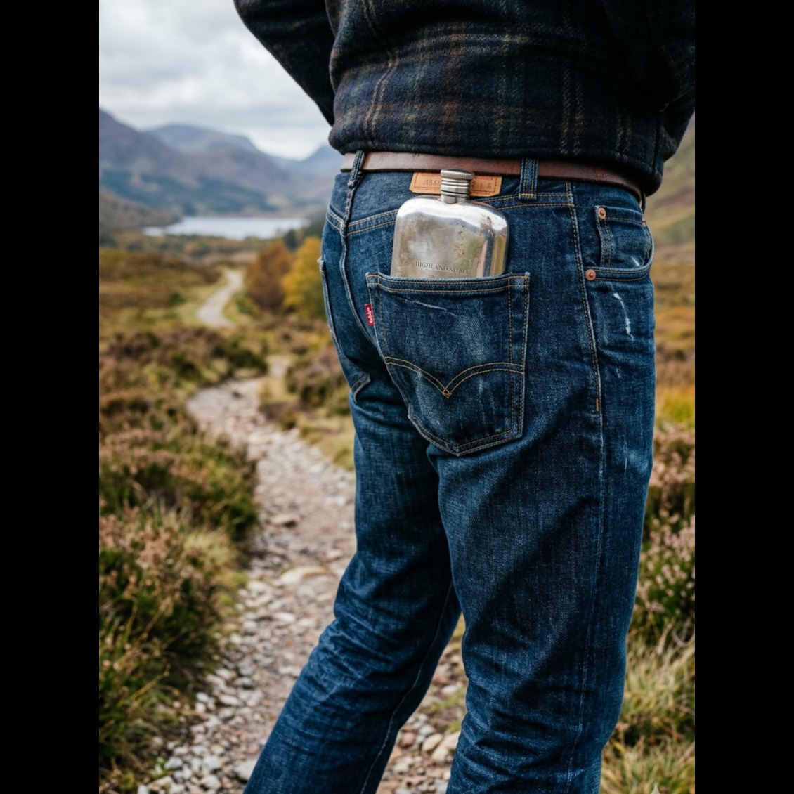 live concert, rock and roll, rockabilly, major, BPM168, male vocal, live shout chorus, call and response, electric guitar(twangy lead riffs), upright bass(slap), drums(driving backbeat), rhythm guitar(chunky strumming), A man carries his late father's bullet-scarred skittle filled with corn whiskey, believing it brings the same luck that once saved his old man's life
