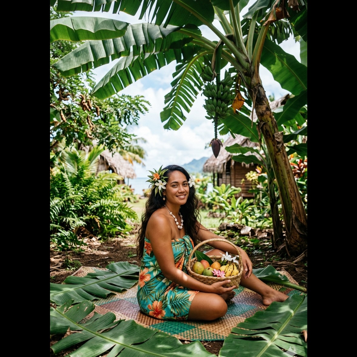 live concert, hard rock, blues rock, minor, 87BPM, powerful female soprano vocal, live shout chorus, call and response, electric guitar(lead riffs), 2nd electric guitar(rhythm power chords), electric bass(driving groove), tenor saxophone(bluesy lines), drums(heavy backbeat), A Japanese man falls for the chief's dark-skinned daughter on a South Sea island, captivated by her dancing under coconut palms and banana trees, longing for her to be his bride