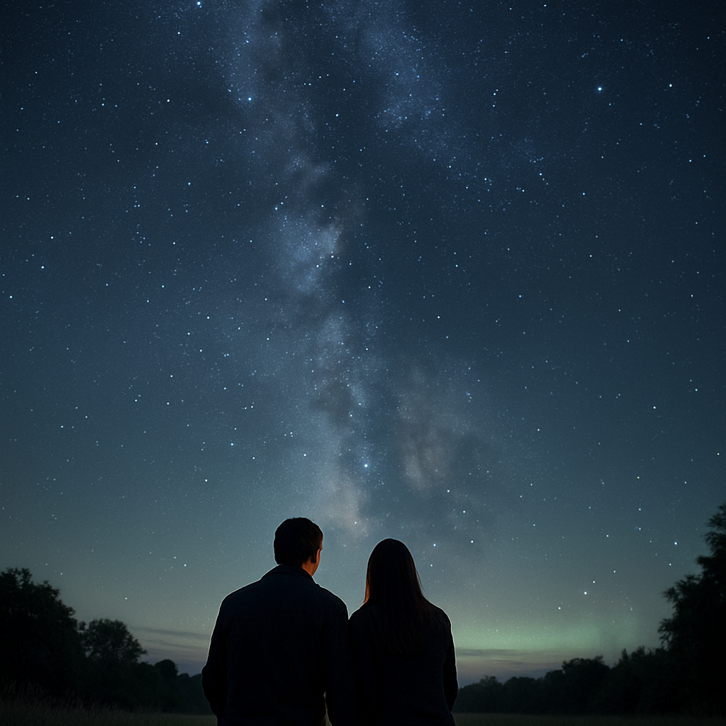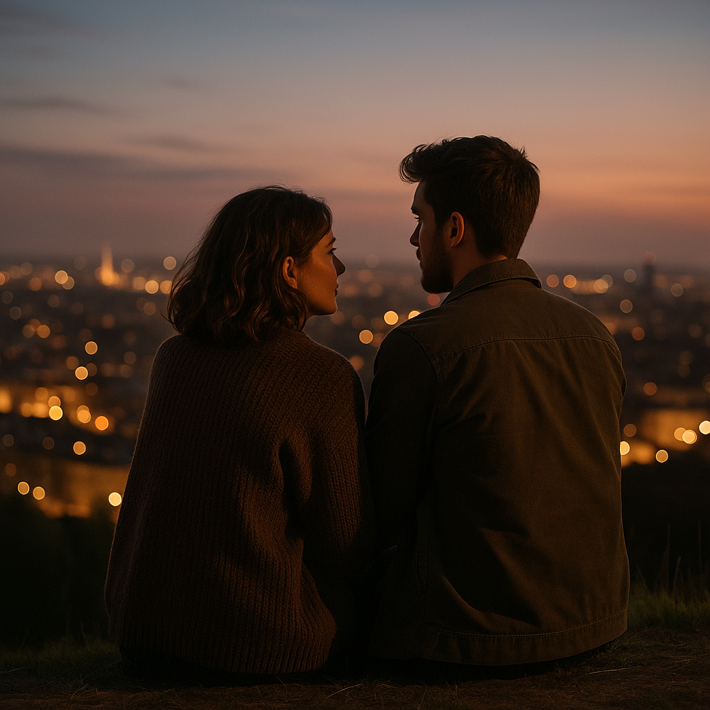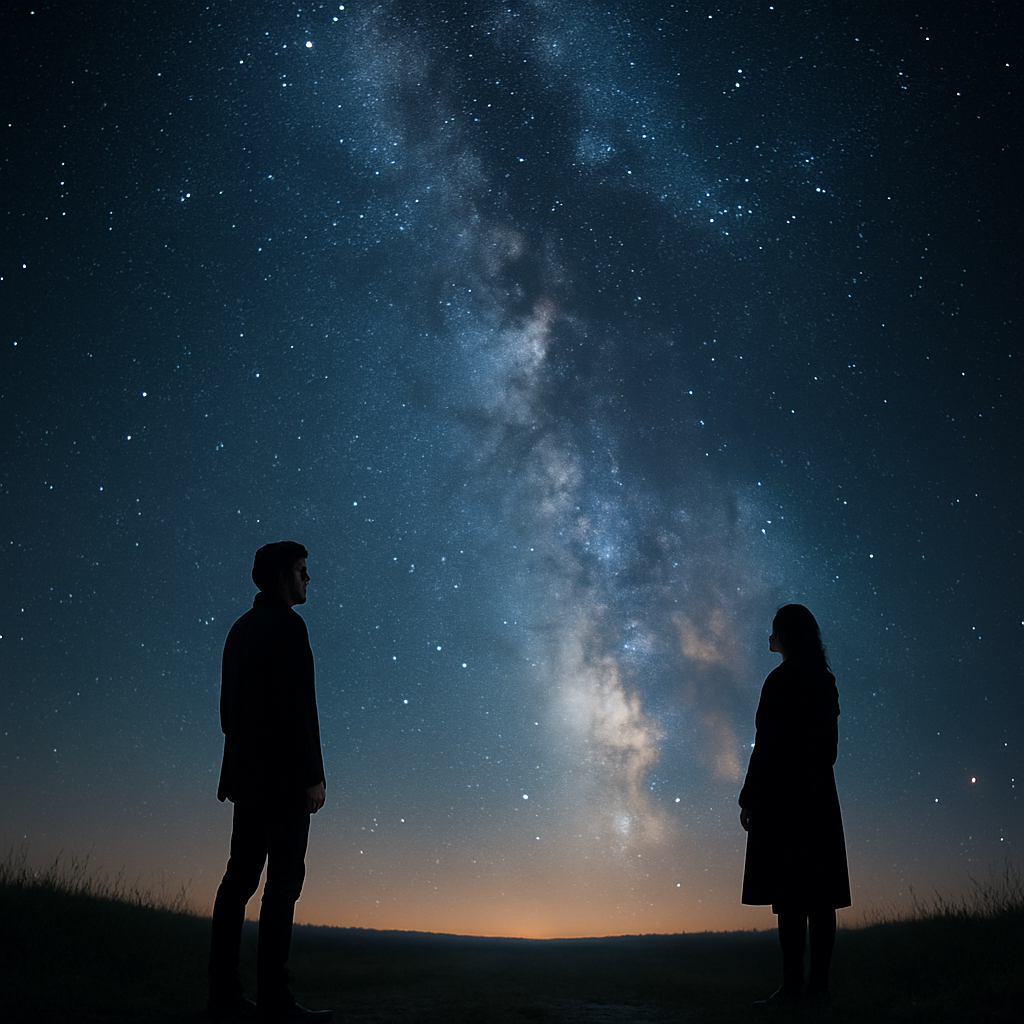 Emotional piano-driven indie ballad duet with heartfelt male and female vocals, Gentle piano intro with warm atmospheric textures, gradually building with soft percussion and layered harmonies, Verses alternate between male and female vocals, intimate and fragile, Choruses soar with both voices blending in rich harmonies, The bridge features a call-and-response between the two voices, leading into a powerful, climactic final chorus, Mood is melancholic yet hopeful, evoking longing, connection, and love that endures across distance and time