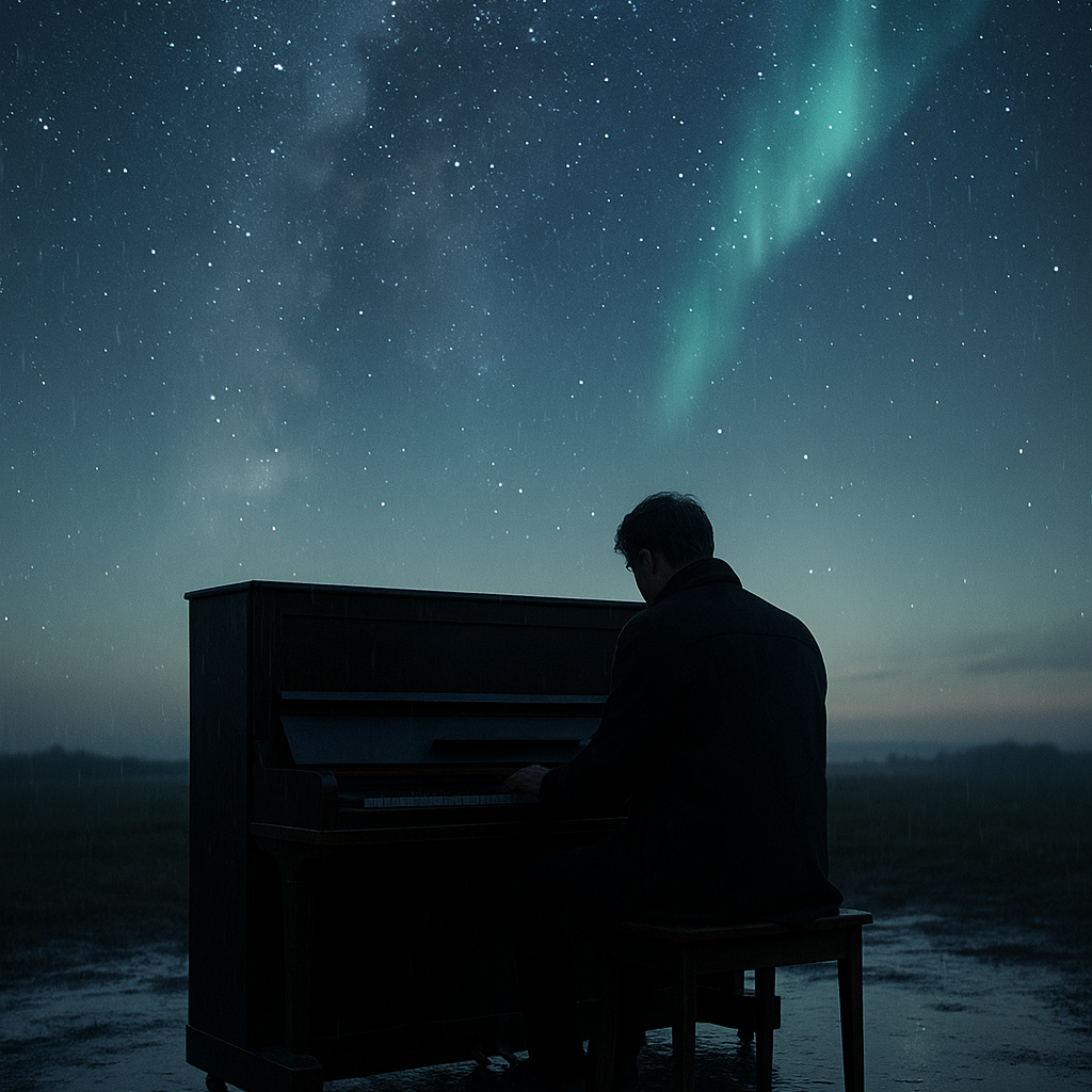 Emotional piano-driven indie ballad with heartfelt male vocals, Features melodic piano as the main instrument, ambient synth textures, and gradually building percussion, Starts soft and intimate, then rises into a powerful, anthemic climax, Mood is melancholic yet hopeful, with lyrics about time, memory, and love enduring through change