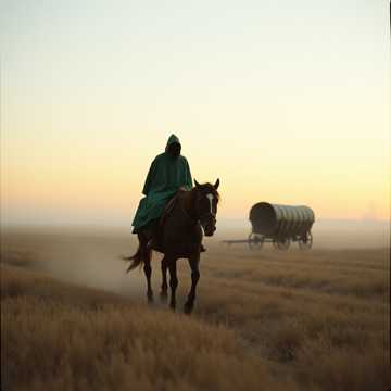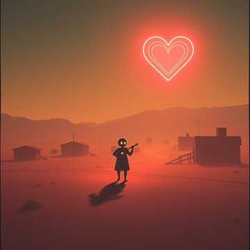 Spaghetti Western score with male vocals, twangy reverb guitar, dusty ride cymbal, and mournful harmonica, Verses stay low and storytelling, kick and bass riding like a slow canter; chorus widens with gang shouts on title line and echoing claps, Bridge adds tremolo guitar swells and wordless background “whoa-ohs, ” then strips back to voice and guitar for the last line