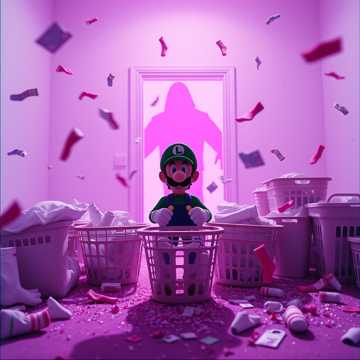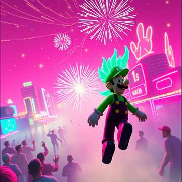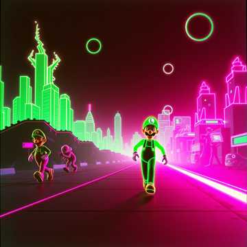 High-energy electro-pop with a dark cartoon edge, male vocals, Squirmy, syncopated bass, sharp snare, and chiptune arps, Verses stay bouncy and playful; chorus shifts into a heavier, glitchy drop as Luigi transforms, Brief cinematic bridge with reverb-soaked pads under Rosalina’s plea, then back into an eerie, chanting hook