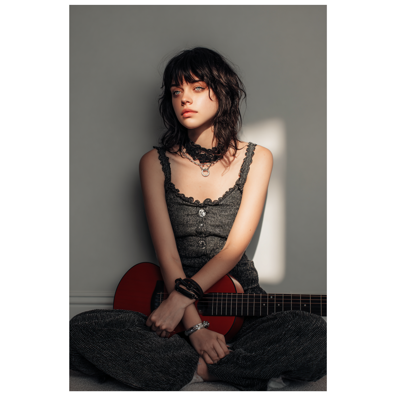 Fast 8-beat rock with a gritty grunge edge, driven by loud crunchy guitars, powerful strumming, and tight palm-muted riffs, Drums are punchy, explosive, with sharp snare hits and energetic fills, maintaining relentless forward motion, Bass is thick, gritty, and locked tightly to the kick for a solid, driving foundation, Overall sound is raw, bright, electric, and high-energy, Female vocals are aggressive, bold, and emotionally intense, with dynamic presence and occasional shouted phrases that cut through distorted guitars, Delivery should convey attitude, sharp articulation, and raw power, Verses are tight and rhythmic with controlled intensity, while choruses erupt with wide open-chord guitars, soaring melodic lines, anthemic hooks, and strong shout accents, Lyrics theme: a young woman embracing her “Seven Sweet Sins” — late nights, sweets, impulse shopping, jealousy, romantic taboos, oversleeping, and turning self-doubt into strength, The track should feel rebellious, colorful, ene