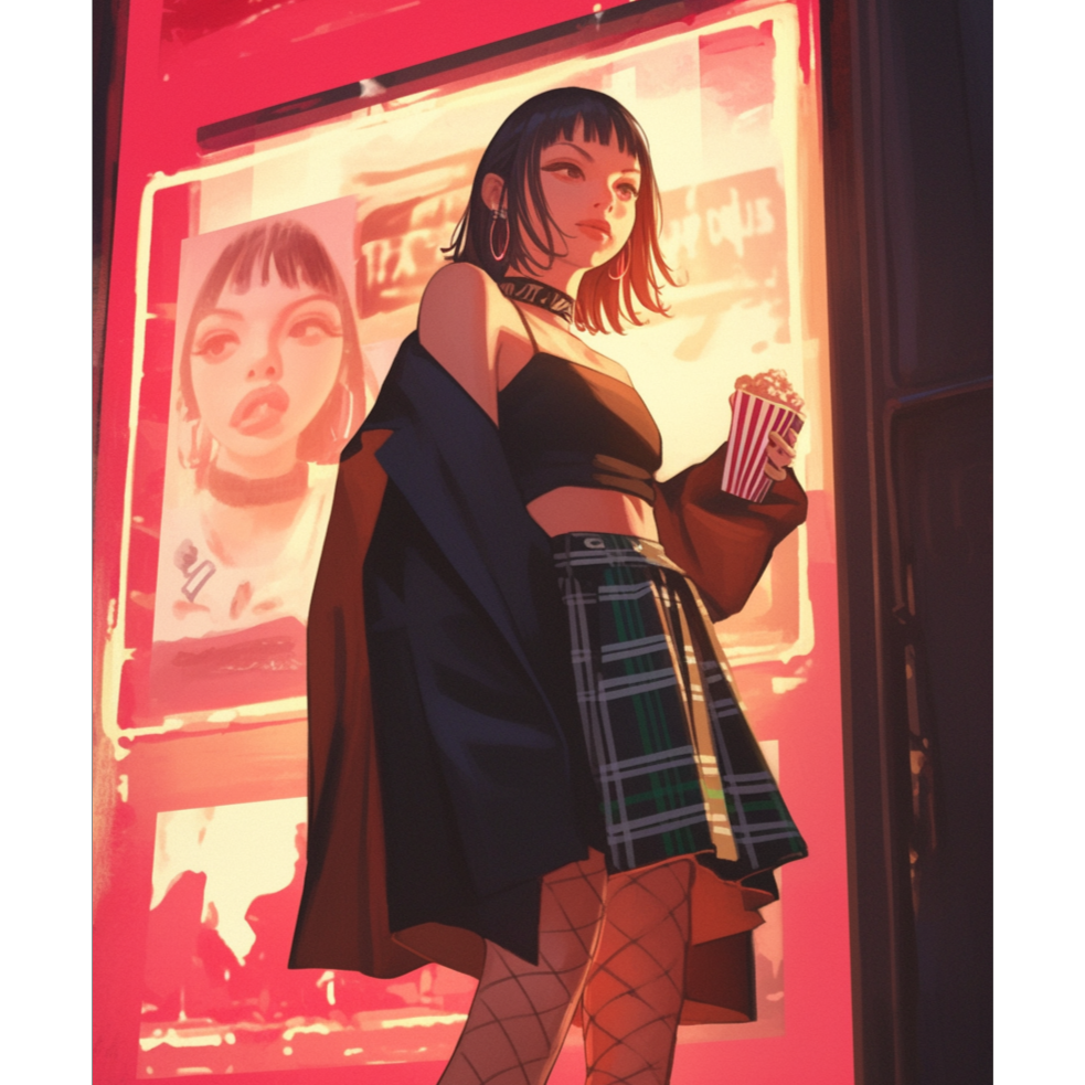 Mid-tempo cinematic pop-rock song with nostalgic but bright energy, The story reflects memories of a small hometown movie theater — warm childhood moments with family and the passage of time — remembered with light, not sadness, The tone should feel nostalgic yet confident, cinematic yet pop, emotional yet stylish, The arrangement blends modern rock groove and cinematic orchestral texture, creating a vivid and dynamic atmosphere, Use a major key with M7 and M9 chords for subtle sophistication, The piano should be the rhythmic center, supported by tight bass, crisp drums, and bright electric guitars with a clean-but-edgy tone, Add strings and brass accents for emotional lift, but keep the rhythm section punchy and pop-oriented, The female vocal is expressive and bold — a mix of husky tone, sharp articulation, and emotional intensity, Her phrasing should feel slightly theatrical, with confident attitude and precise rhythm, Not cute or sweet — more mature, stylish, and charismatic, In c