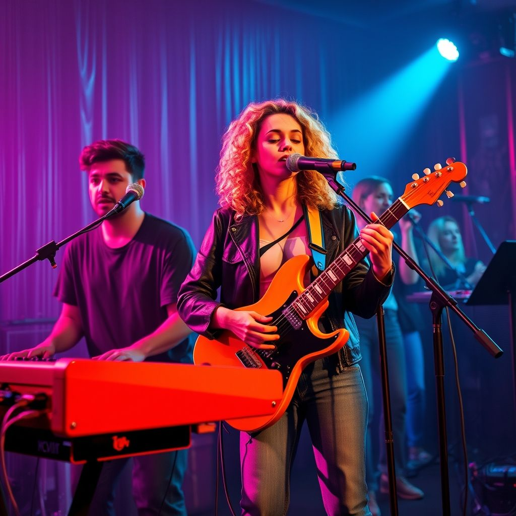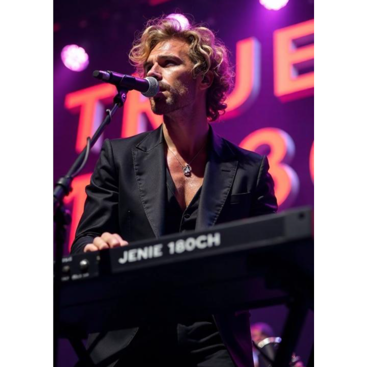 The song layers Nord Stage 2’s lush pianos and pads with Roland Juno G’s bright, chorus-rich synth textures, Moog MG-1 adds analog bass pulses, while Yamaha DX7IId delivers crystalline bells and FM keys, Alesis Vortex 2 injects expressive leads, with dynamic stage presence throughout