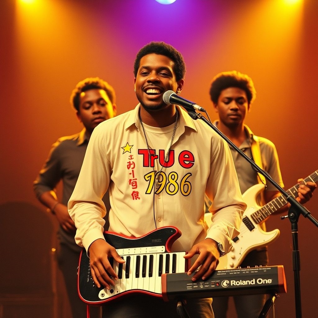 A synth-pop track layered with Juno-106 pads, DX7 bell tones, and lush Korg M1 stabs, Roland TR-707 drives a syncopated rhythm, while the Moog vocoder—processing a soulful Latino male voice—adds robotic texture via noise and sawtooth carriers across 8–20 bands, creating futuristic harmonies