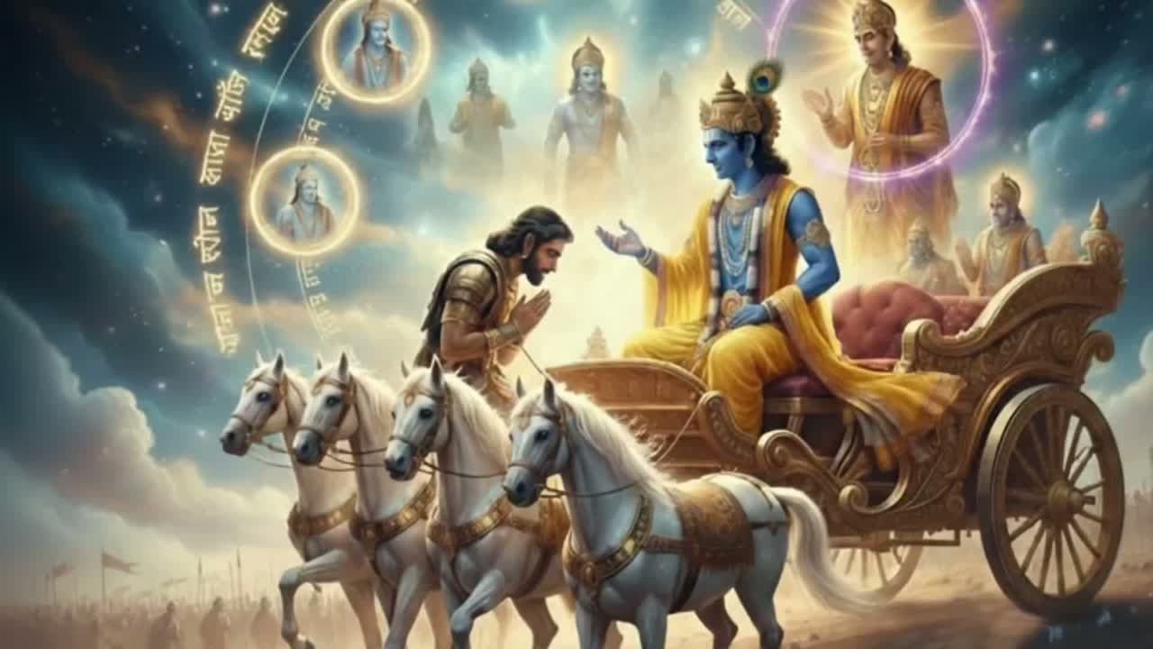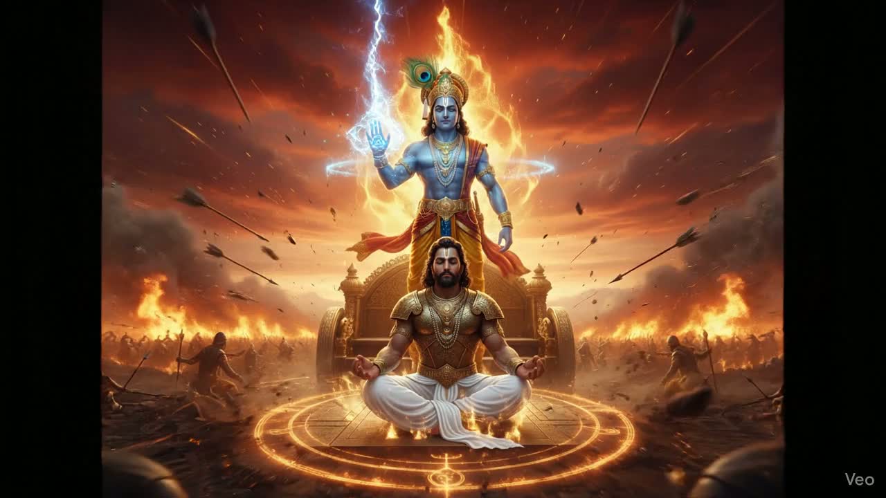 Pop X Rap X Dance X Energetic X Divine - RESOLUTE/EMPOWERING theme, STRUCTURE: Rising strength miracle flute intro (0:00-0:15) → Krishna divine rap verse 1 with ethereal masculine flow, transcendent authority (0:15-0:45) → Arjuna vulnerable sung response with emotional tenor (0:45-1:00) → Krishna divine rap verse 2 building cosmic authority, heavenly baritone rap flow (1:00-1:30) → Miracle flute bridge with divine harmonies (1:30-1:45) → Krishna final rap with full divine presence, otherworldly rap delivery (1:45-2:15) → Arjuna realization outro with awakening melody (2:15-2:30), TEMPO: 110 BPM steady empowerment, INSTRUMENTS: Miracle flute (strength-building lead), cosmic synths, divine drums, ethereal pads, wisdom bass, VOCALS: Krishna - divine rap flow, angelic tenor rap, transcendent masculine; Arjuna - vulnerable sung tenor, emotional delivery, CHARACTER VOICES: Krishna consistent divine rapper, Arjuna consistent emotional singer throughout album, ‑scream, ‑harsh rap, ‑aggressive hip-hop, ‑gangsta rap, ‑dark trap, ‑screaming vocals, ‑death metal, ‑punk rap