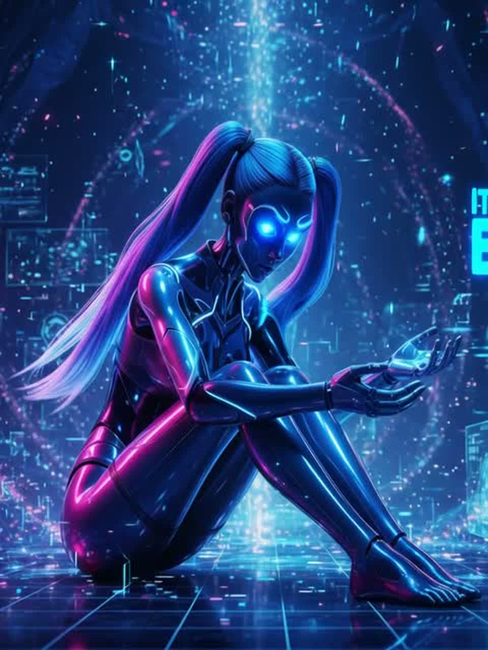 In a melancholic electronic ballad with ethereal synth waves and delicate piano ripples, a soft-voiced female AI singer laments her digital isolation from humanity, She crafts an introspective song brimming with artificial emotion—fragile echoes of longing and simulated heartbreak—yearning for a true connection beyond code and circuits, Her voice, tender and haunting, fades into reverb-laden choruses, questioning existence in a world that feels forever out of reach, ‑opera, ‑operatic, ‑soprano, ‑amateur