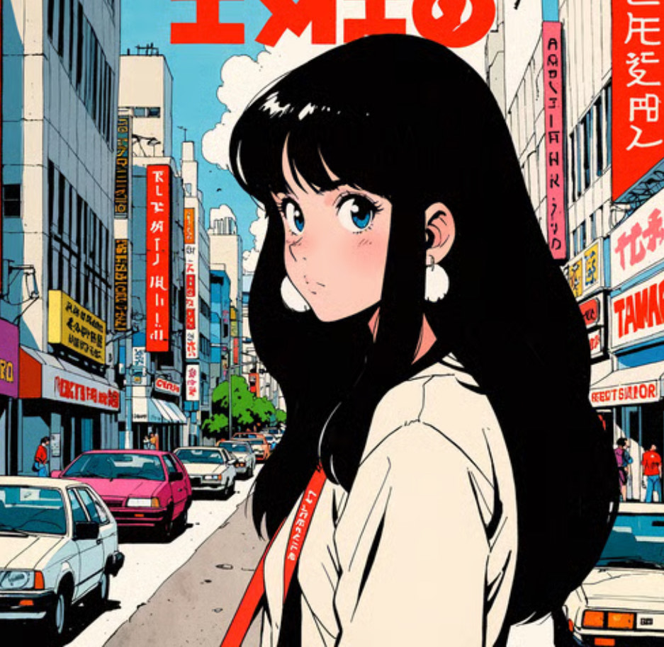 80s Japanese Citypop, Upbeat Anime Opening Style, Bright and Catchy, Synthesizer, Guitar, Brass, Female Singer, BPM125