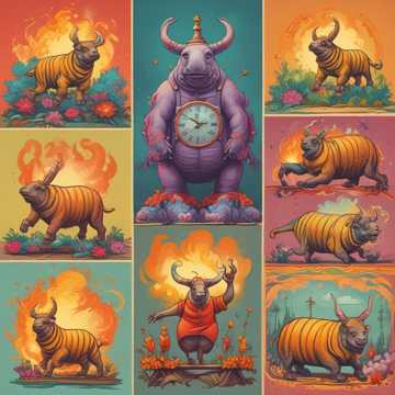 motivational garage rock, hip-hop rhythm, electric guitar, electric bass, timpani, sousaphone, trumpets, big band, 128 bpm, Arpeggiators